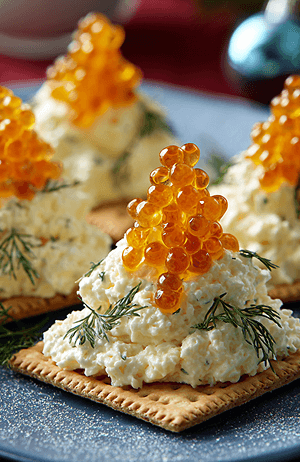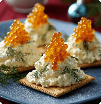 - Украсьте ёлочку икрой и мелко рубленым укропом.
