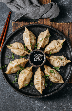 - Приготовьте: Обжарьте гёдза на разогретой сковороде с небольшим количеством масла до лёгкой румяности. Затем влейте заливку (например, смесь воды и соевого соуса) и тушите под крышкой на маленьком огне 10-15 минут.