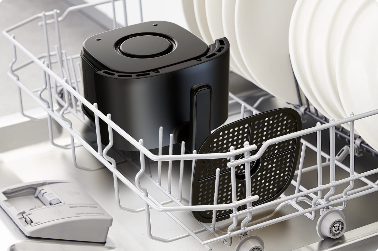 Чашу и решётку аэрогриля легко мыть под водой или в посудомоечной машине.