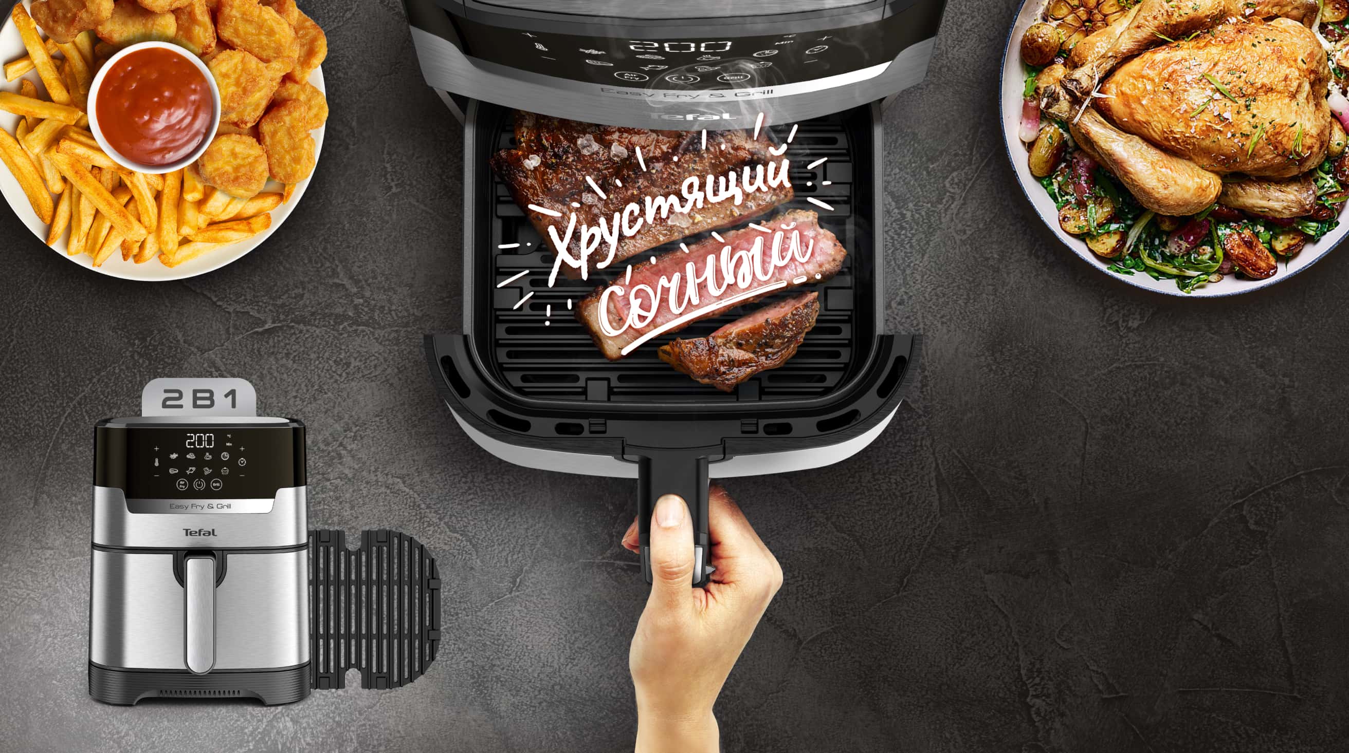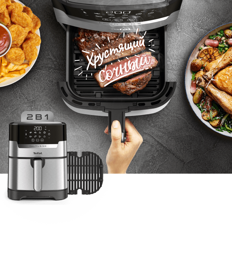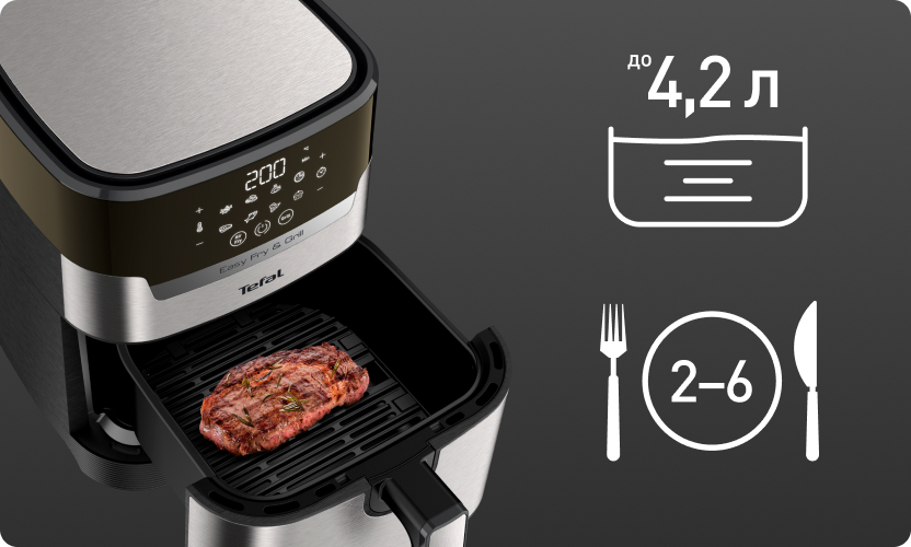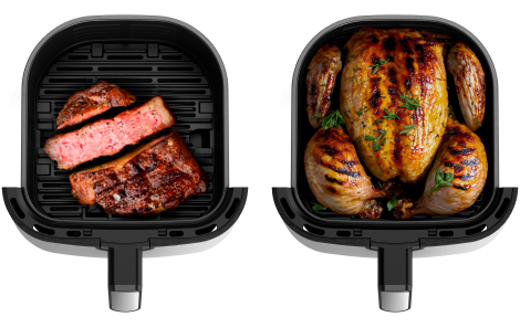 Одно из преимуществ аэрогриля — многофункциональность. Вы сможете жарить курицу, картофель, запекать мясо, готовить выпечку, десерты, сырники и многое другое, и быть уверены в превосходном результате!