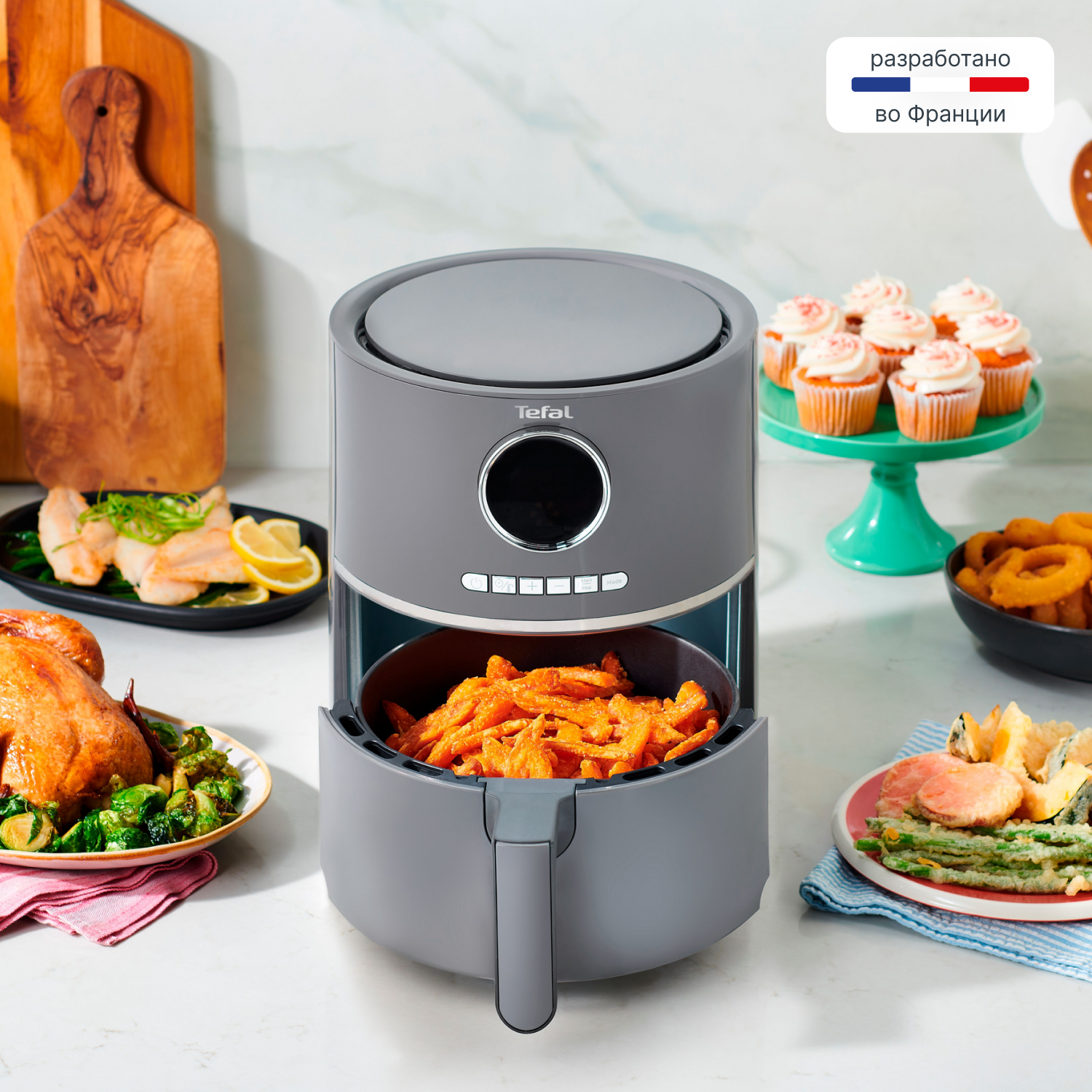 Объем чаши 4.2 литра позволяет приготовить полноценный ужин за один раз. Управление простое и интуитивное: на цифровом дисплее можно установить таймер, выбрать одну из 8 автоматических программ для разных продуктов или настроить температуру от 80°C до 200°C для ваших авторских рецептов. Система циркуляции горячего воздуха гарантирует равномерное пропекание и сочный результат.