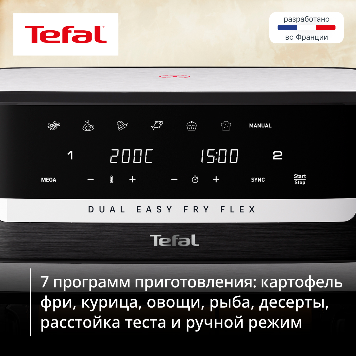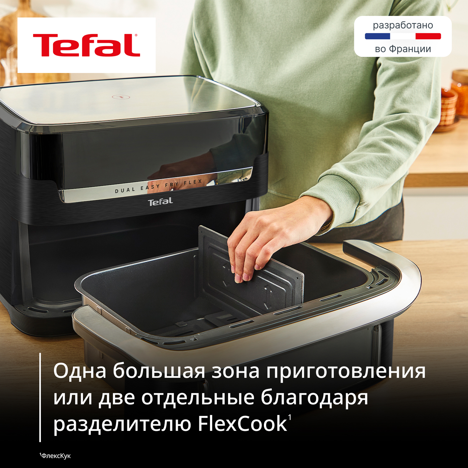 Аэрогриль Tefal Dual Easy Fry Flex EY9228E0 — настоящее спасение для занятых хозяек. Он позволяет готовить два разных блюда одновременно благодаря уникальному съемному разделителю FlexCook. Это идеальное решение для быстрого и легкого приготовления семейного ужина.