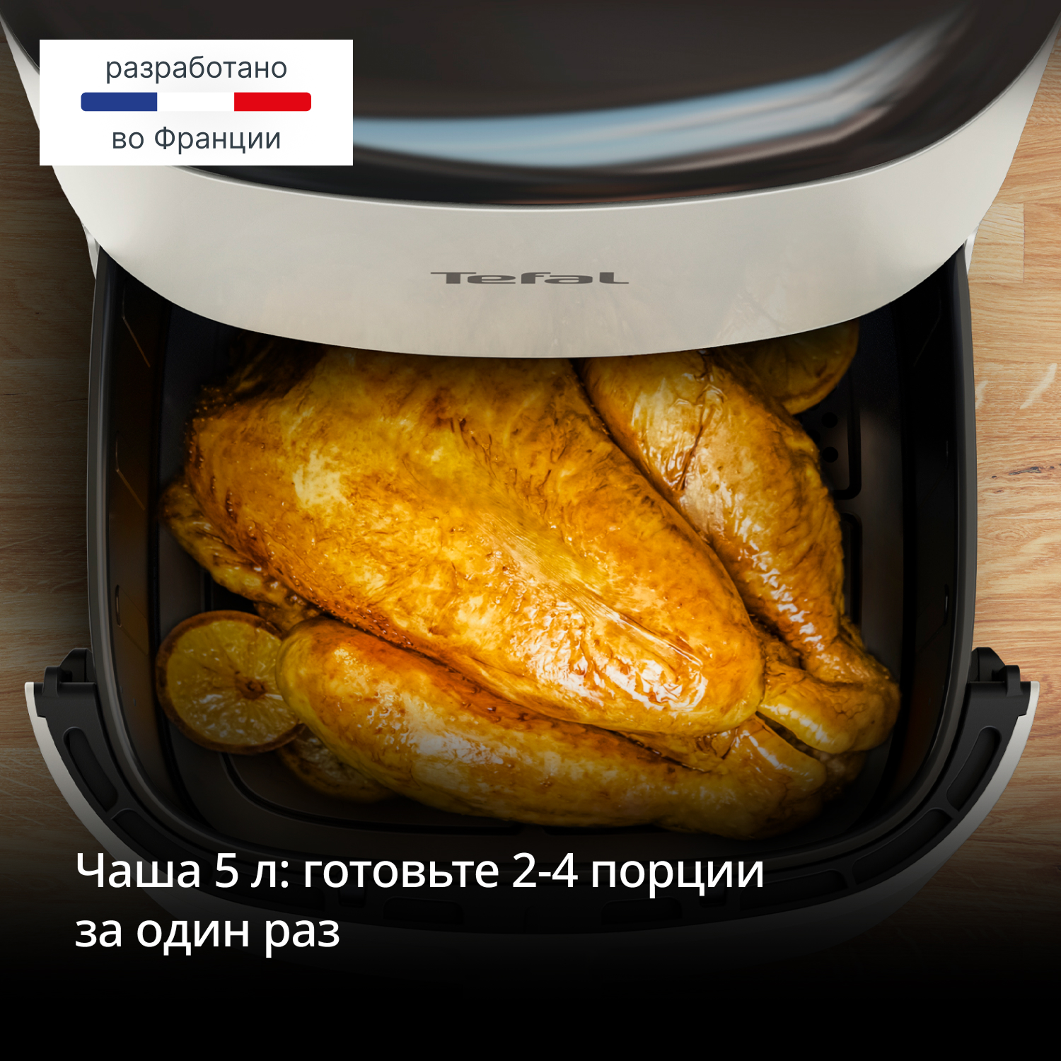 Аэрогриль Tefal Easy Fry Max EY245AE0. Вкусные блюда с хрустящей корочкой быстрее, чем в духовке. В аэрогриле Easy Fry Max с мощностью 1550 Вт даже сложные блюда готовятся на 46% быстрее. Воздух в аэрогриле циркулирует быстро и равномерно, прогревая продукт со всех сторон. В результате блюдо получается сочным внутри и с хрустящей корочкой.