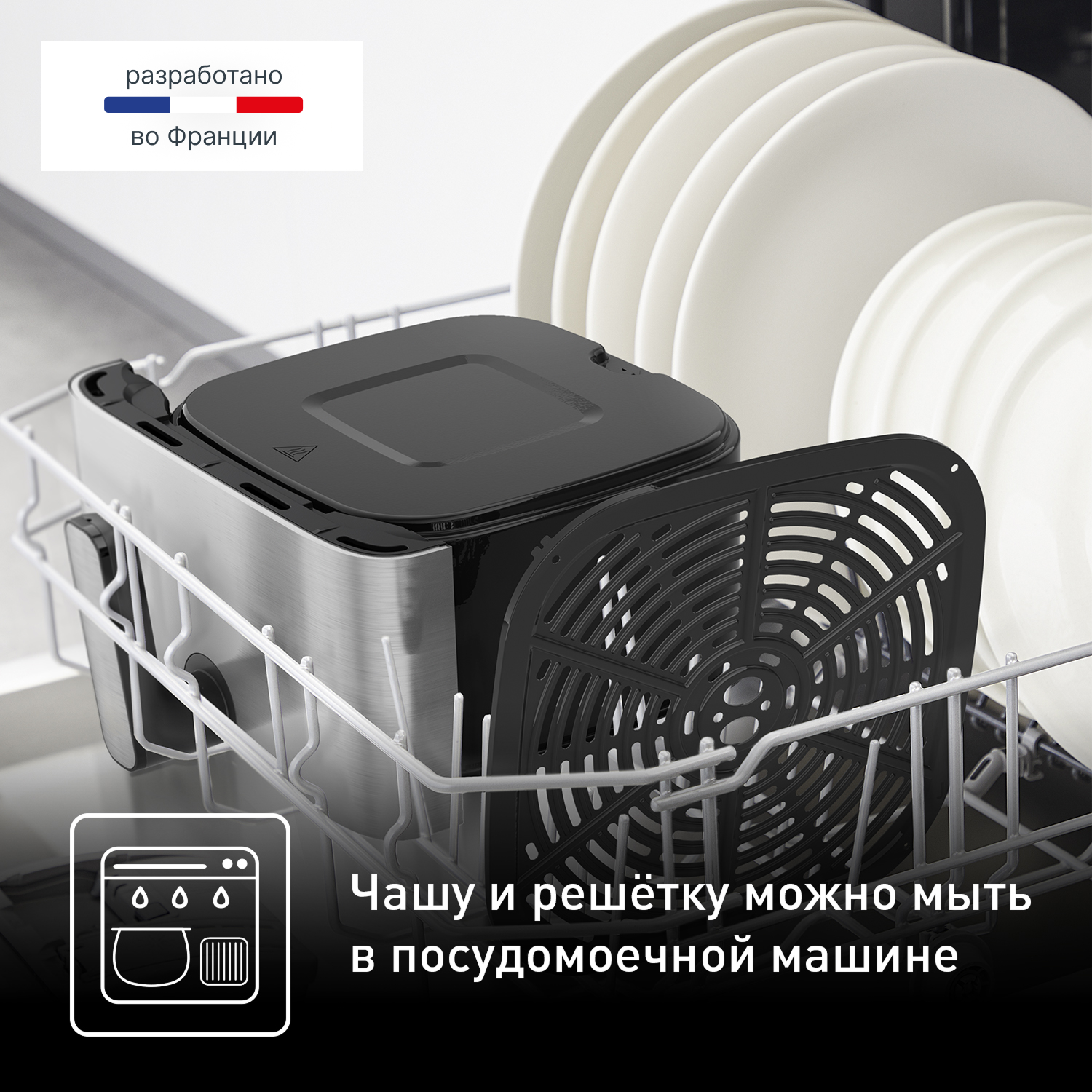 Его прочное антипригарное покрытие не боится ежедневного использования и легко в уходе, а стильный дизайн в цвете «нержавеющая сталь» с черными акцентами станет современным дополнением кухни. Этот аэрогриль — идеальное решение для большой семьи, где ценят время и вкусную домашнюю еду.