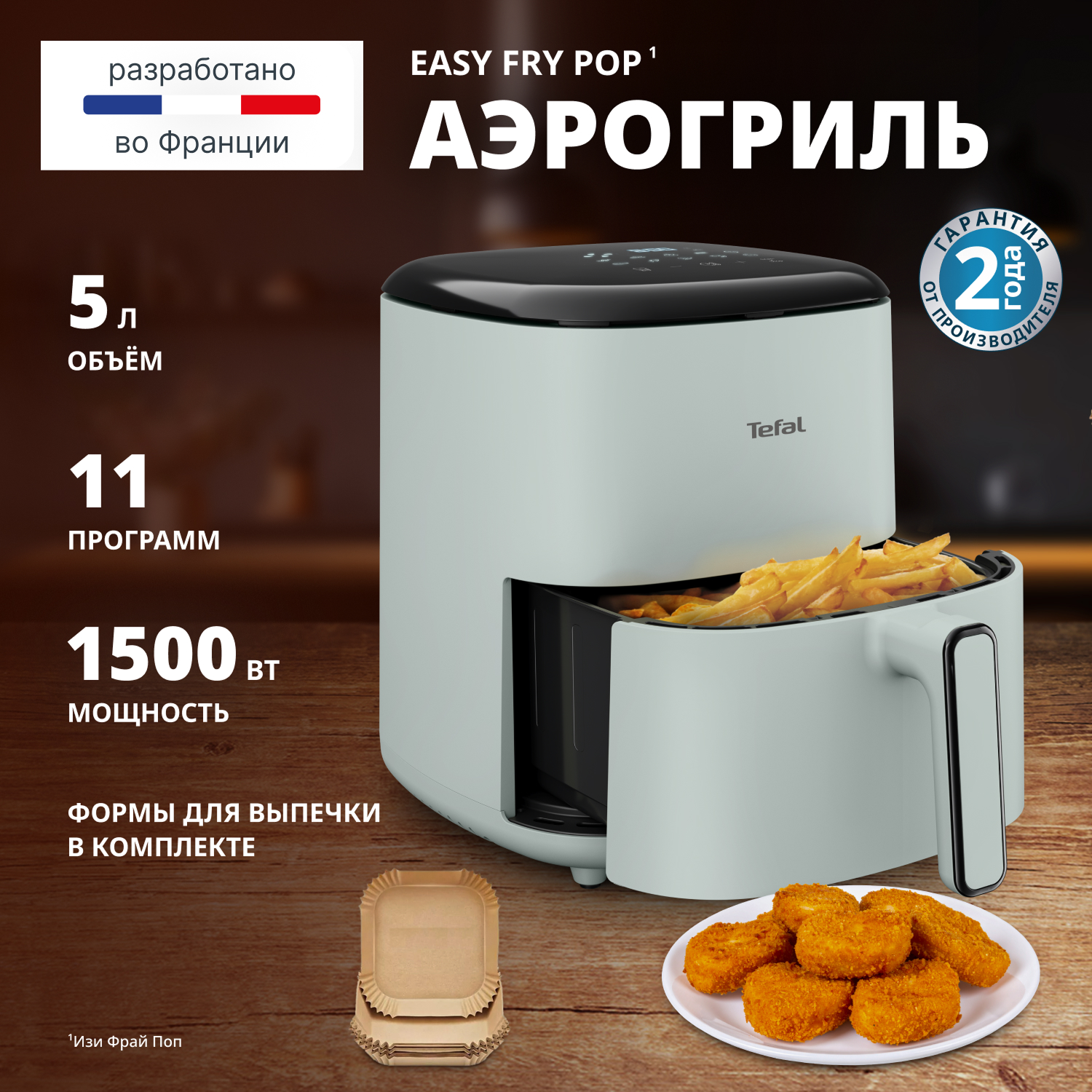В аэрогриле Tefal Easy Fry Pop EY2454E0 с мощностью 1500 Вт даже сложные блюда готовятся быстрее. Воздух в аэрогриле циркулирует быстро и равномерно, прогревая продукт со всех сторон. В результате блюдо получается сочным внутри и с хрустящей корочкой.