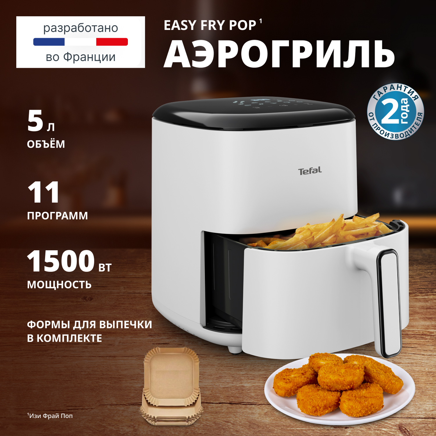 В аэрогриле Tefal Easy Fry Pop EY245GE0 с мощностью 1500 Вт даже сложные блюда готовятся быстрее. Воздух в аэрогриле циркулирует быстро и равномерно, прогревая продукт со всех сторон. В результате блюдо получается сочным внутри и с хрустящей корочкой.