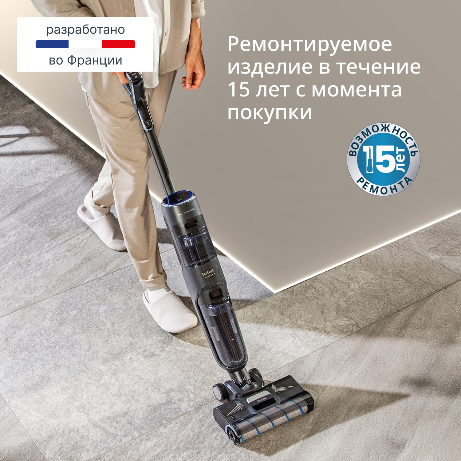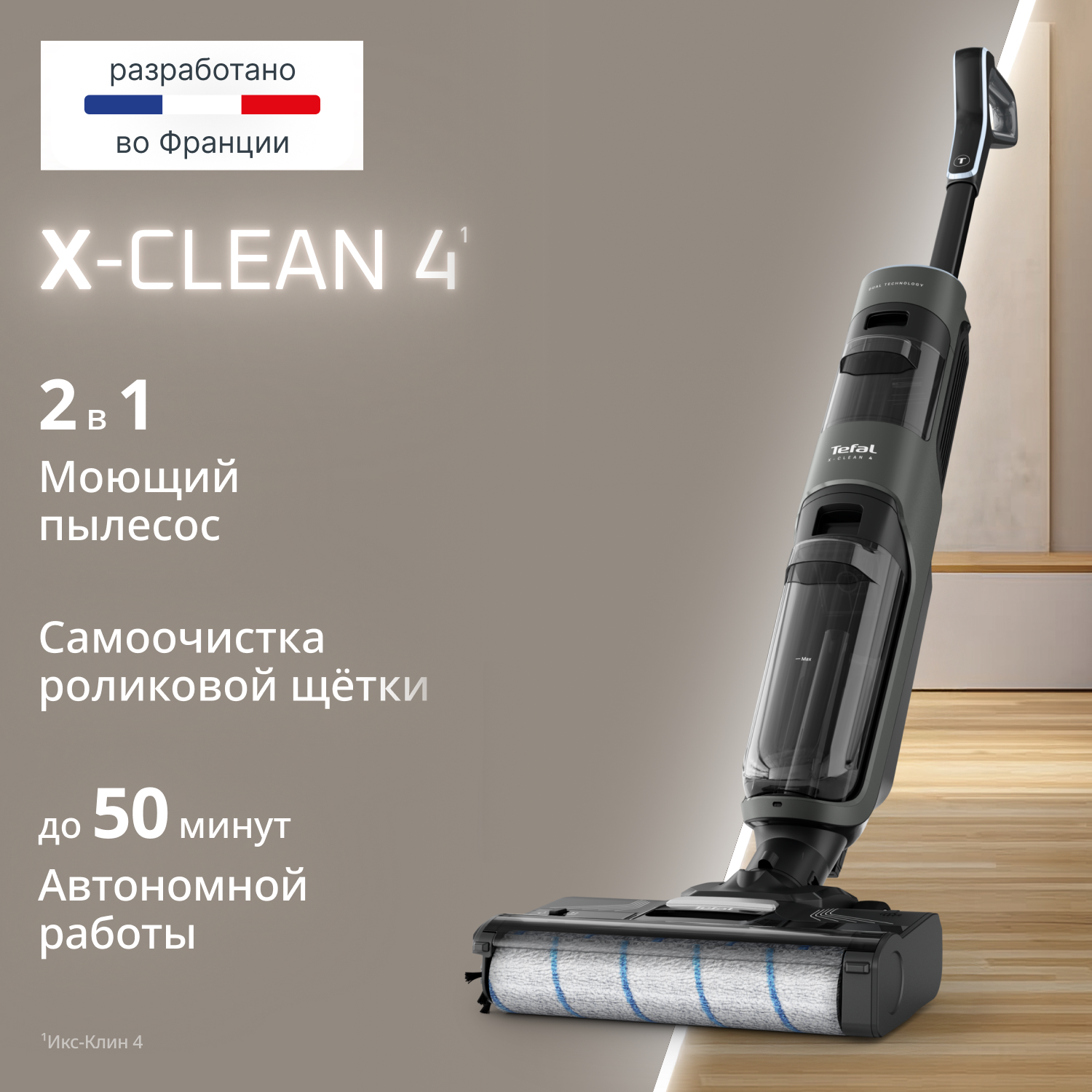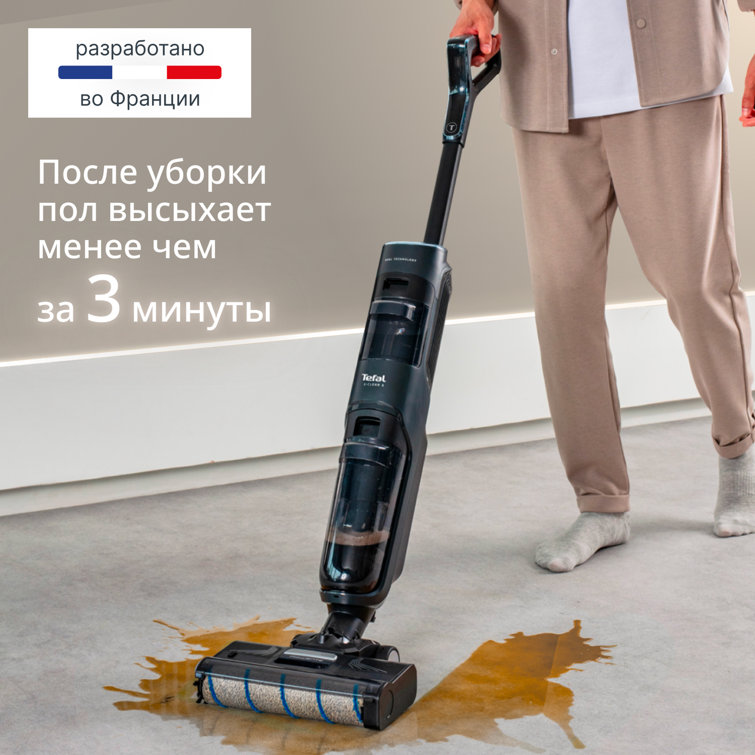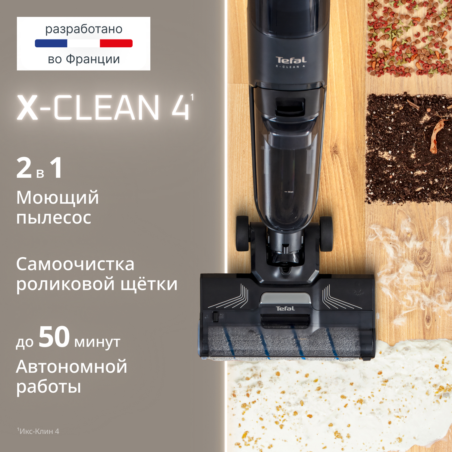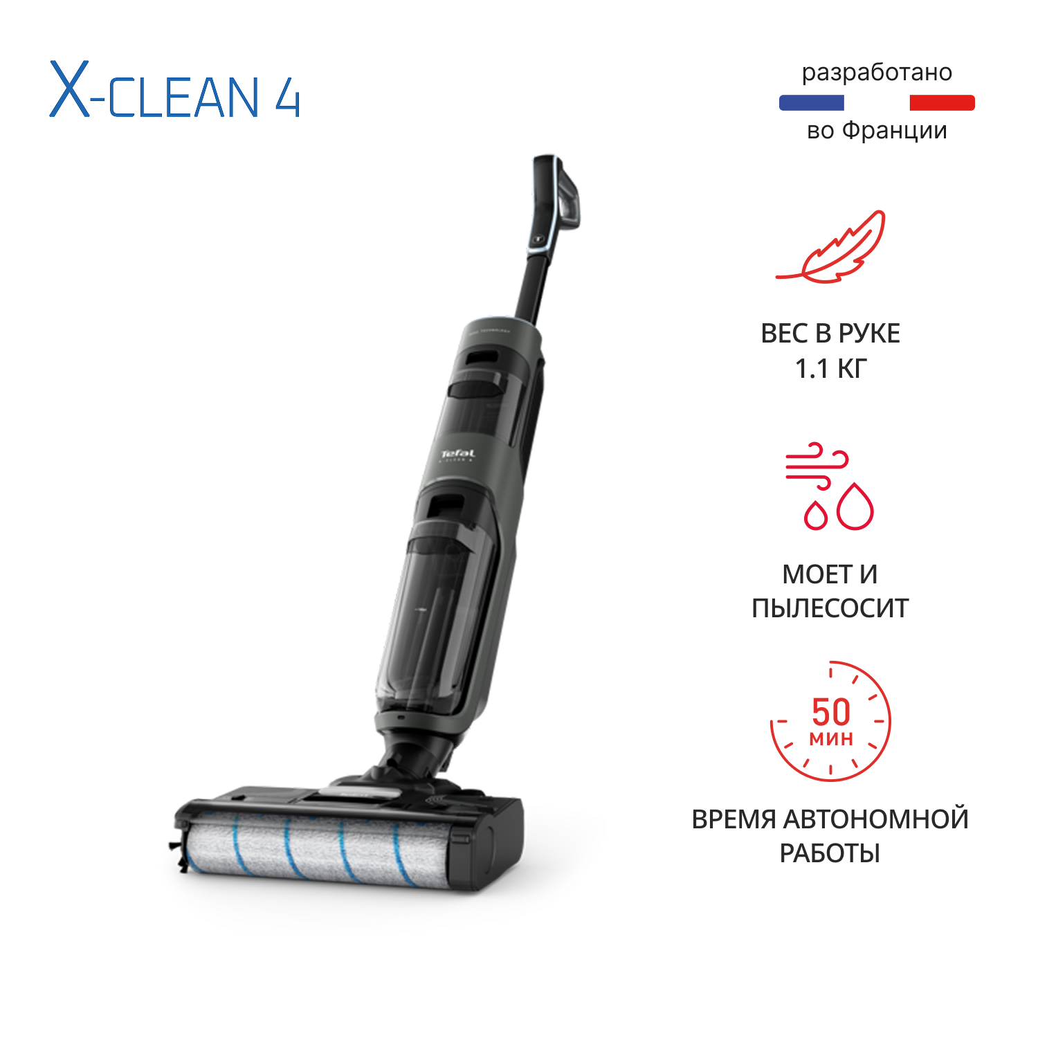 Беспроводной моющий пылесос Tefal X-Clean 4 GF5035F0 создан для современных домов, где важна идеальная чистота без хлопот. Он станет настоящим помощником для семей с детьми и животными, мгновенно совмещая сухую и влажную уборку таких покрытий, как плитка, ламинат или паркет.