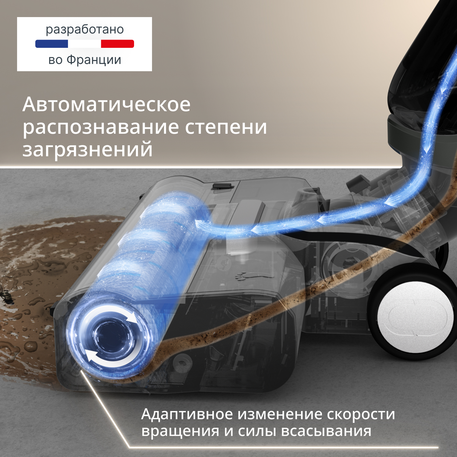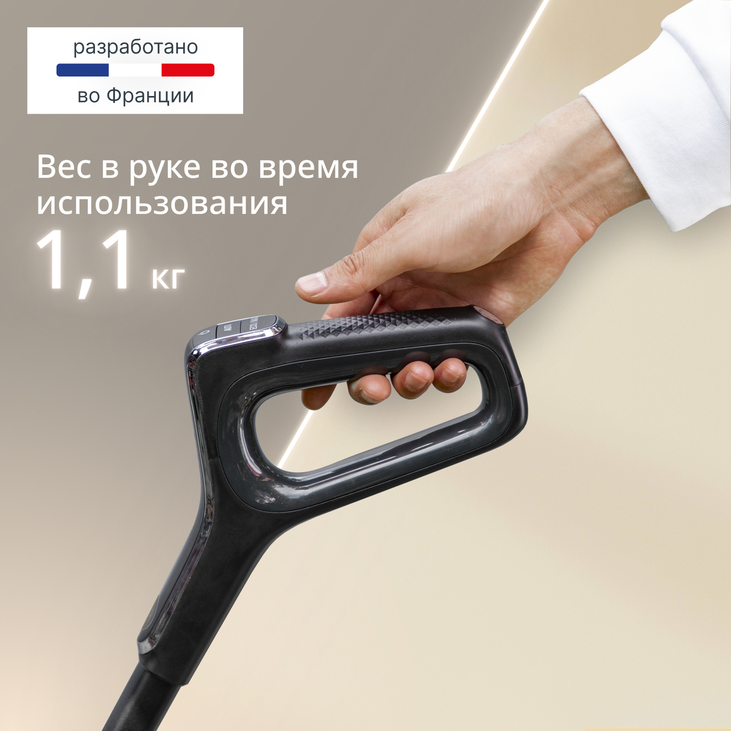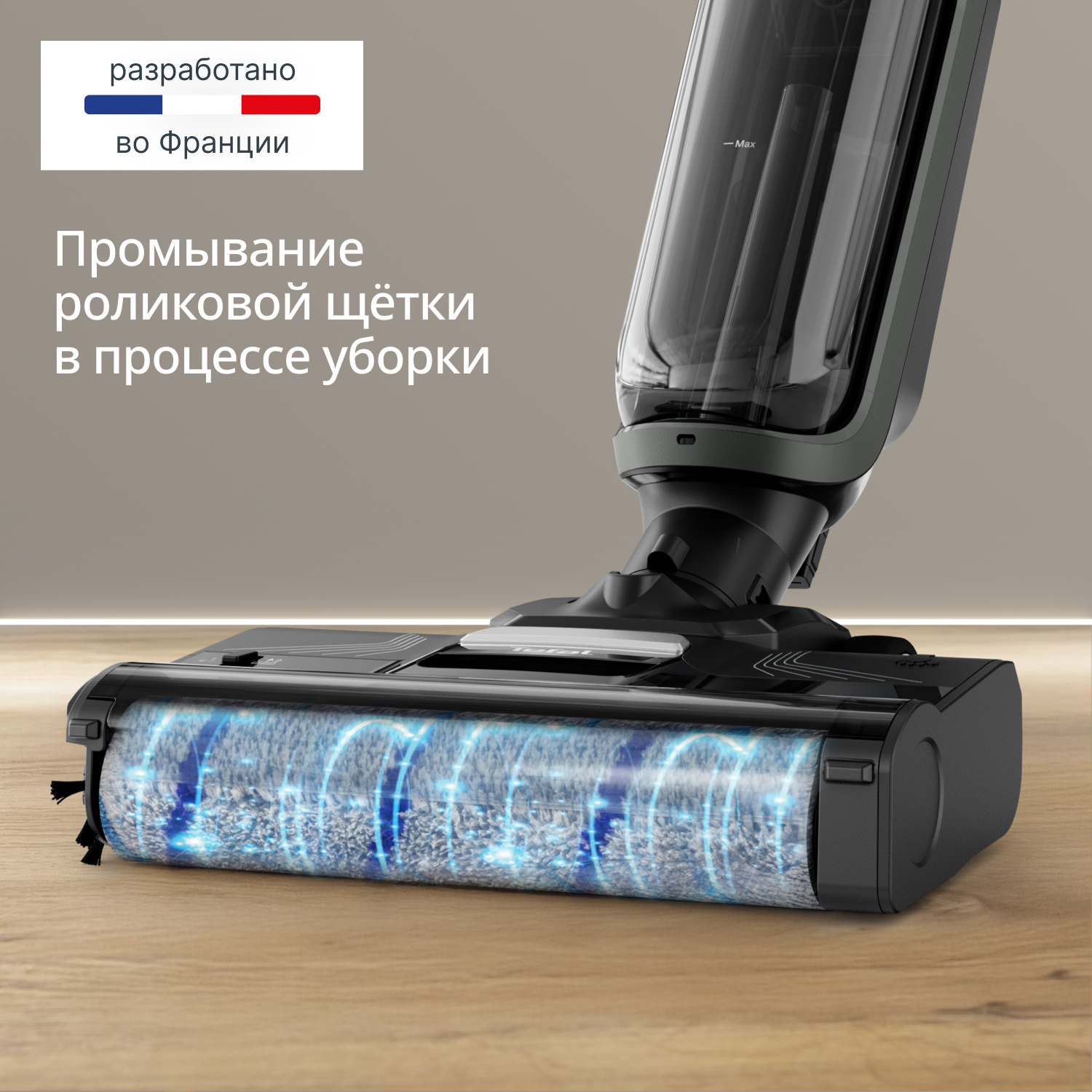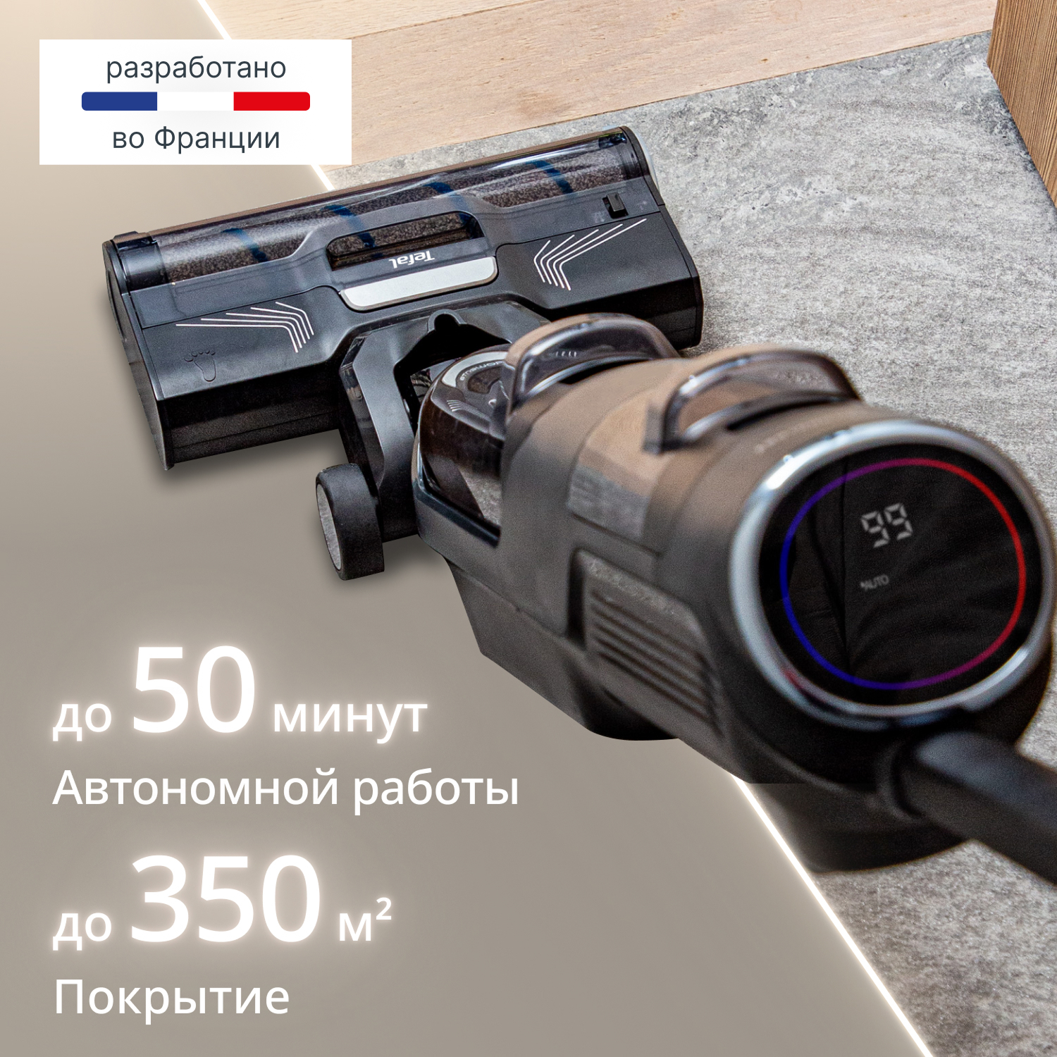 Мощности в 200 Вт достаточно для эффективного удаления пыли и разводов, а управление с ручки и LED-экран делают процесс интуитивно понятным. Выберите один из трех режимов (Авто, Эко или МАКС) в зависимости от задачи. Аккумулятора хватает до 50 минут работы — этого достаточно, чтобы убрать всю квартиру без подзарядки.