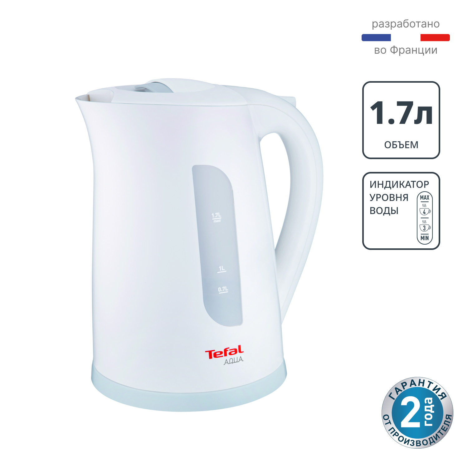 Электрический чайник Tefal Aqua KO270130 с минималистичным дизайном создан для тех, кто ценит скорость и простоту. Его мощности 2400 Вт достаточно, чтобы вскипятить 1,7 литра воды для всей семьи за считанные минуты. Скрытый нагревательный элемент не только выглядит эстетично, но и делает уход проще — накипь легко удалить.