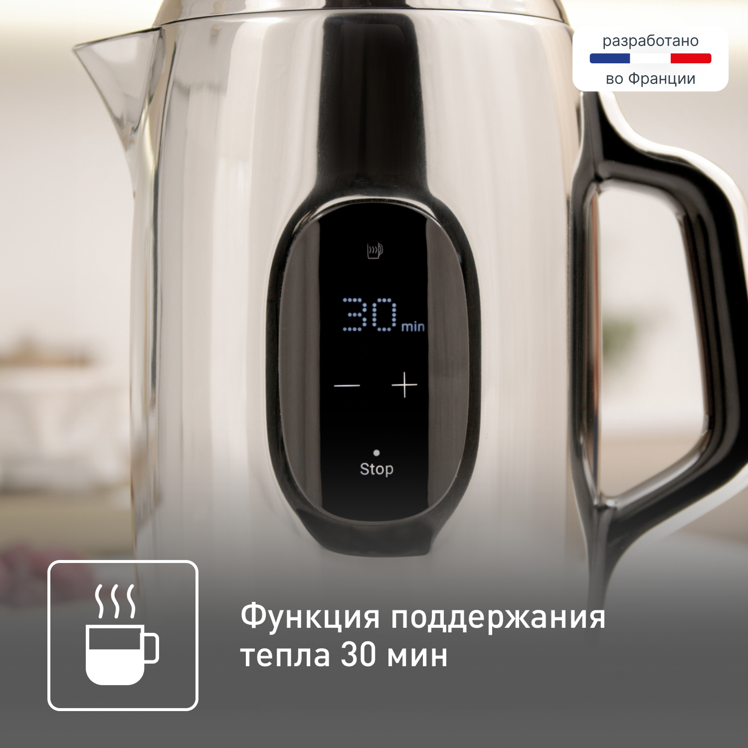 Современный чайник с точной настройкой температуры. Дизайн — огонь, сенсорный дисплей удобный, но нужно привыкнуть к управлению: не всегда реагирует моментально. Поддержка температуры — топ, особенно зимой. Работает тихо. Пользуюсь уже полгода — довольна.