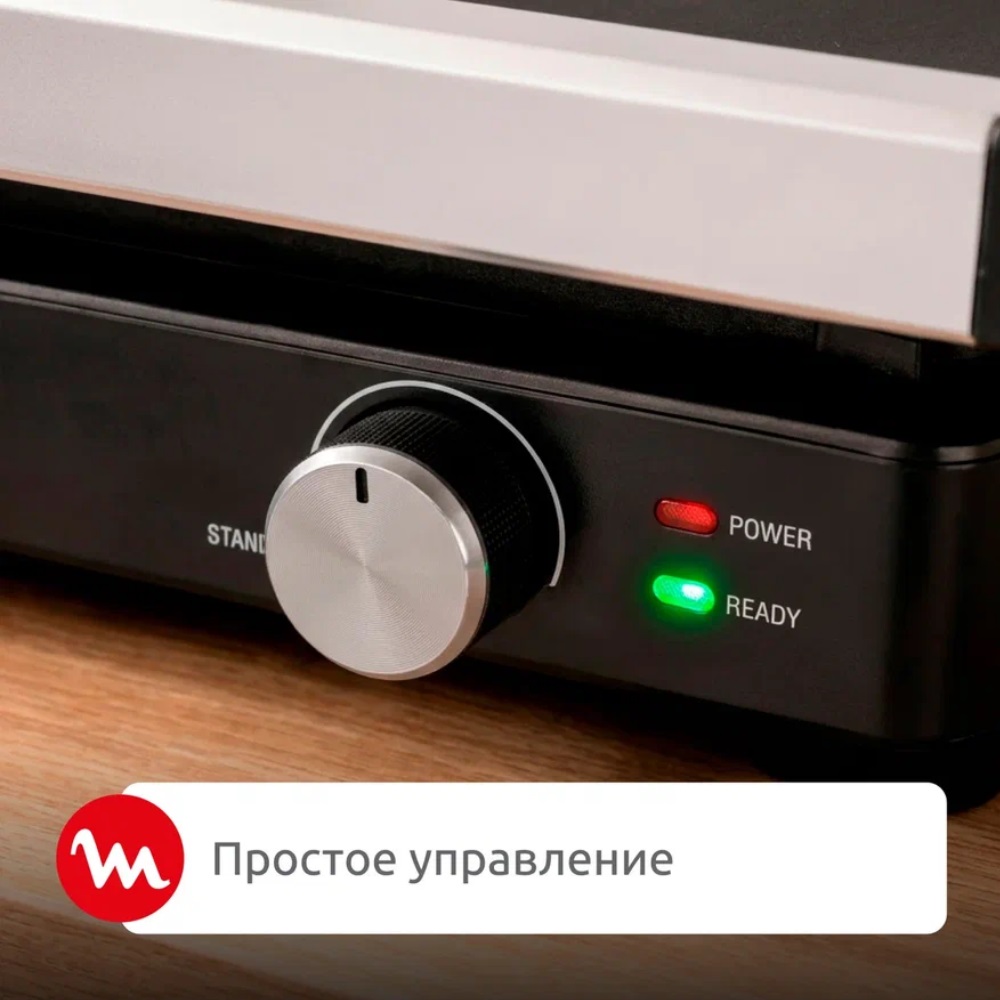 Две позиции приготовления (гриль и барбекю) позволяют готовить любые блюда, делая каждый прием пищи незабываемым! Металлические пластины с антипригарным покрытием не требуют добавления жира или масла при приготовлении. Простой в использовании индикатор подскажет вам, когда начинать готовить, а специальный регулятор позволит вам настроить мощность. Благодаря вертикальному хранению прибор легко поместится на любой кухне.