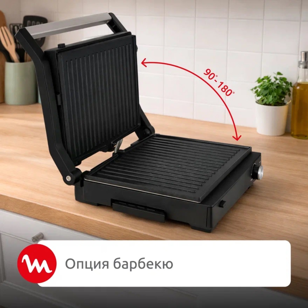 Электрический гриль 2-in-1 Moulinex Grill GI5R08F1 с мощностью 1800 Вт, которая обеспечивает быстрый нагрев пластин и равномерное приготовление любых продуктов - от сочных стейков до овощей и горячих сэндвичей, придавая блюдам неповторимый вкус. Гриль раскрывается на 180°, превращаясь в полноценную зону барбекю. В таком положении рабочая поверхность увеличивается вдвое, позволяя готовить больше продуктов.