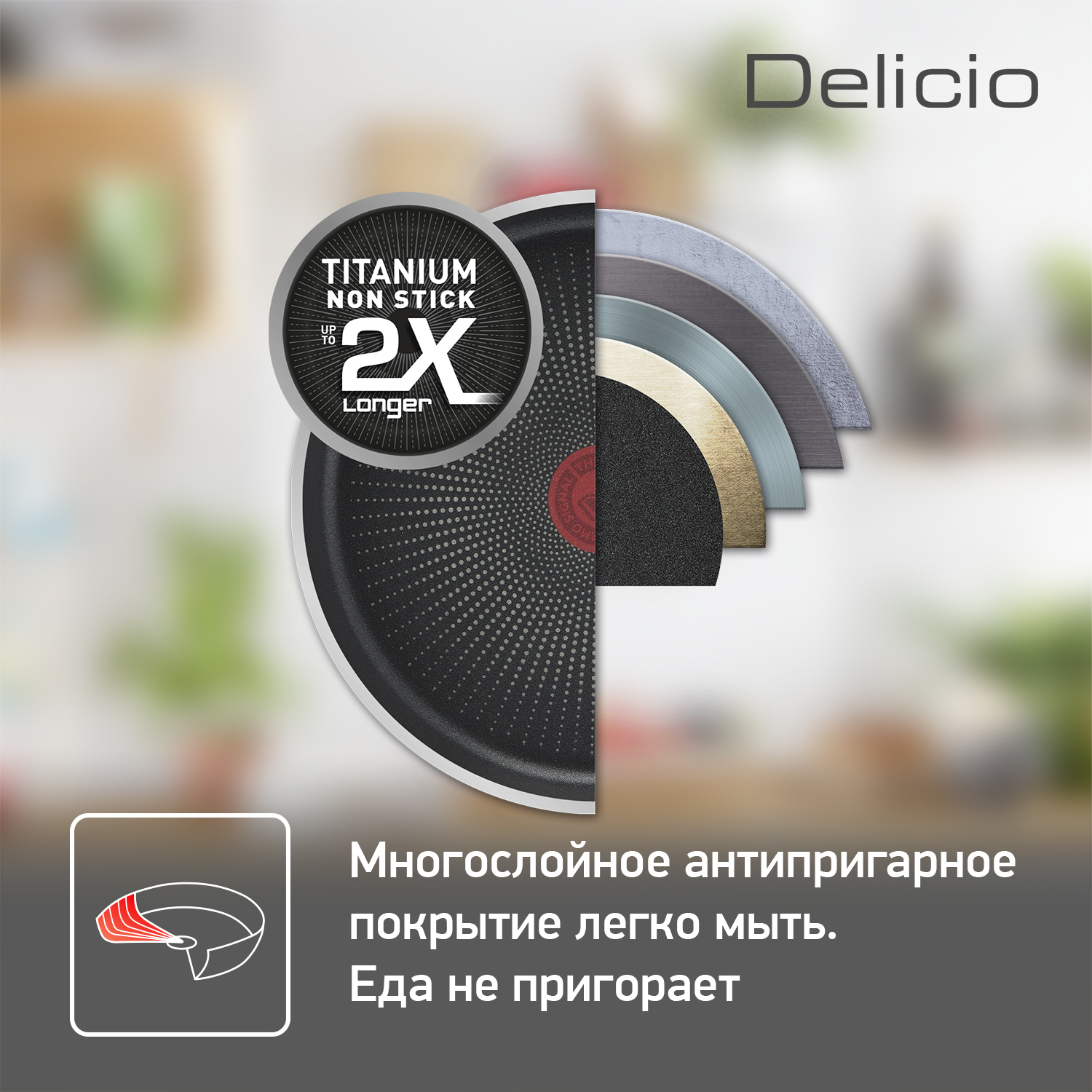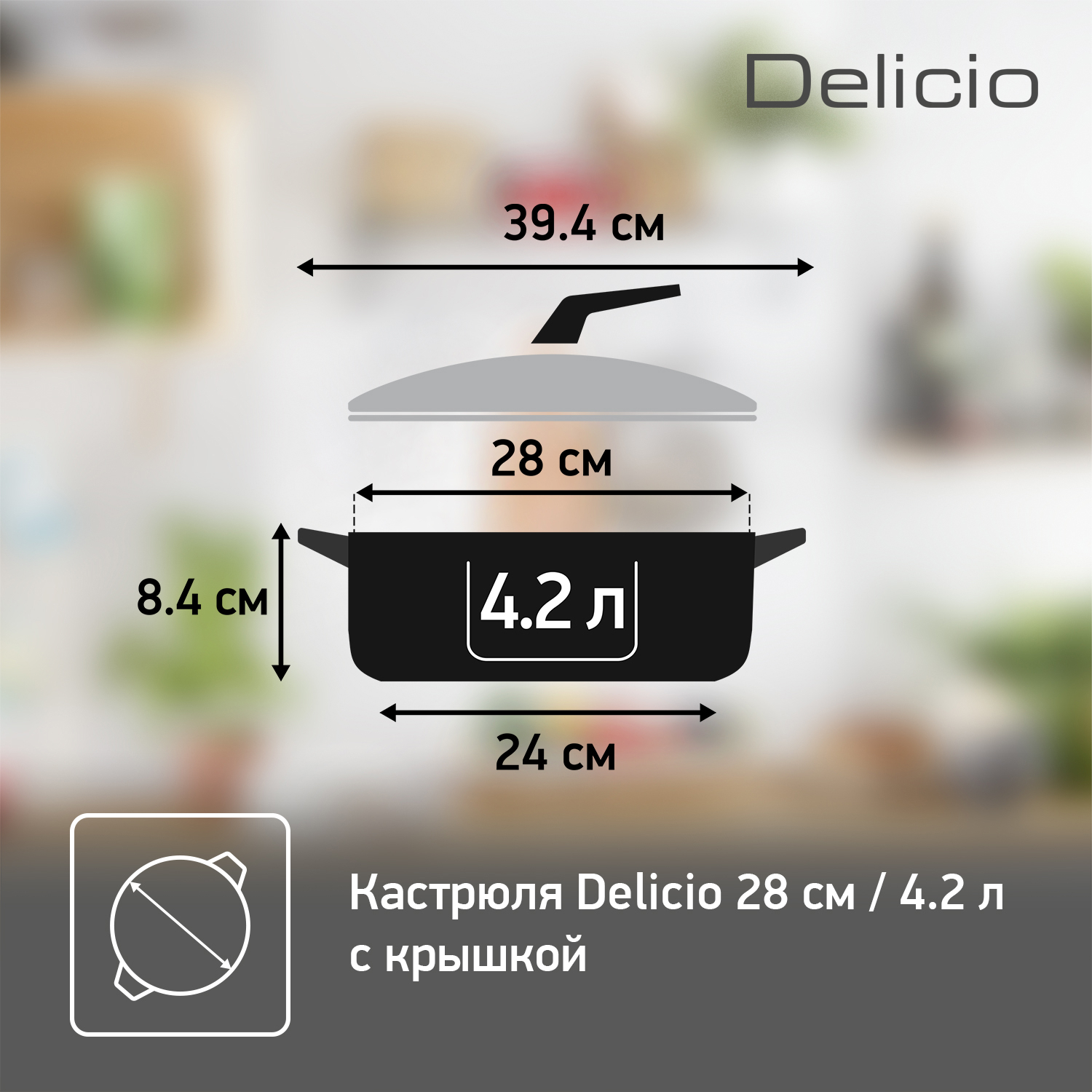 Кастрюля с крышкой низкая Tefal Delicio 28 см E2327274