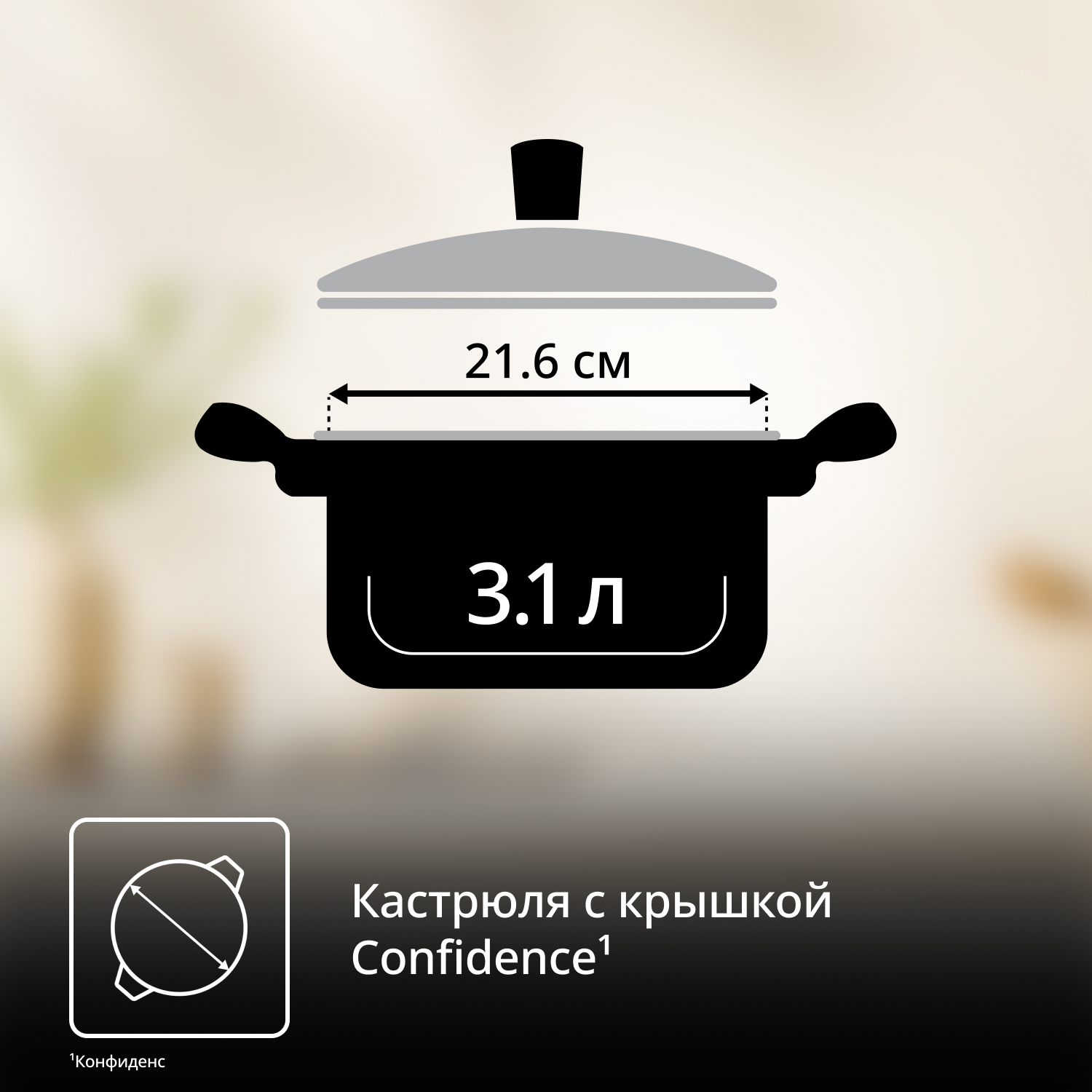 Кастрюля со стеклянной крышкой Tefal Confidence 20 см, 3.1 л G7644474 — это практичный выбор для ежедневного приготовления любимых блюд.