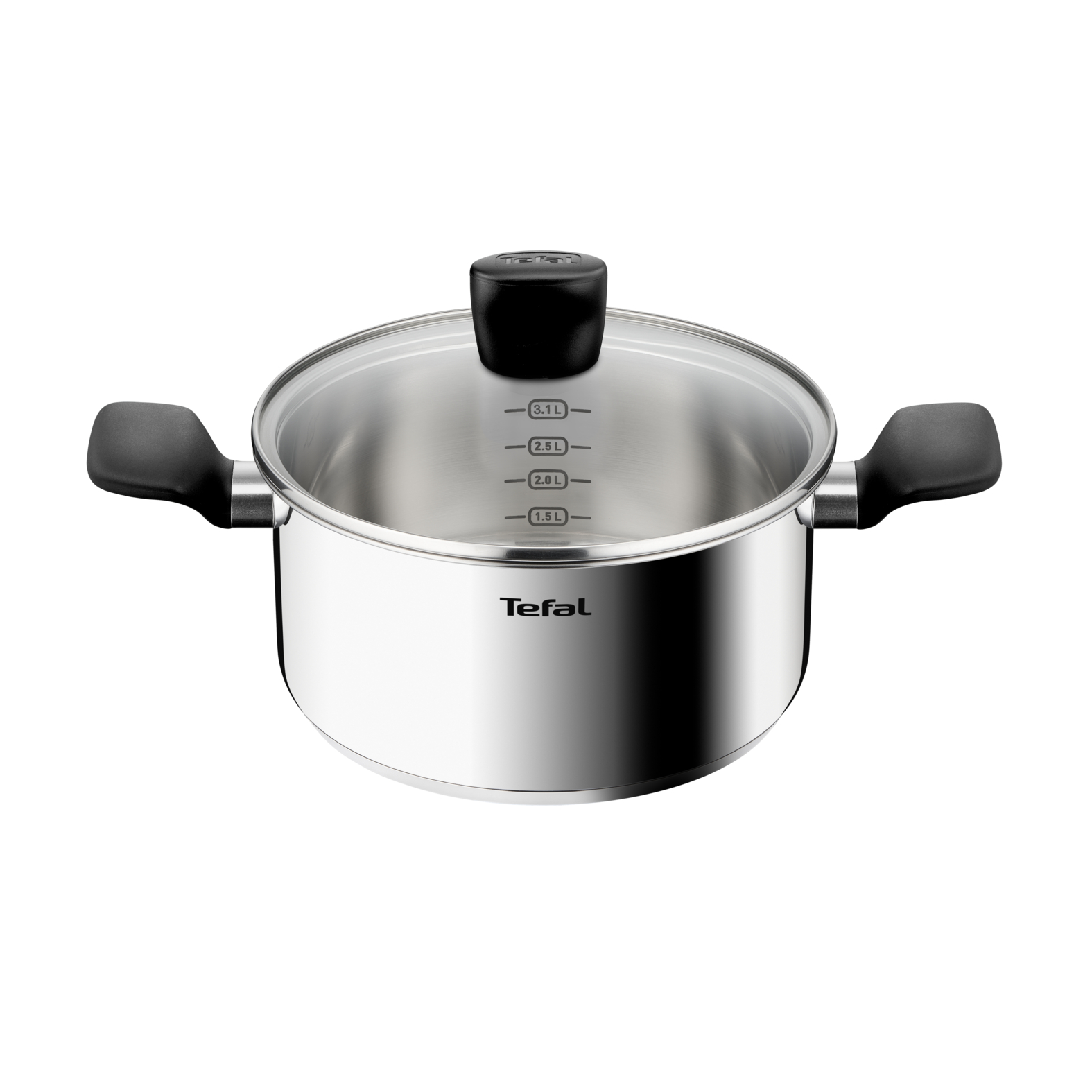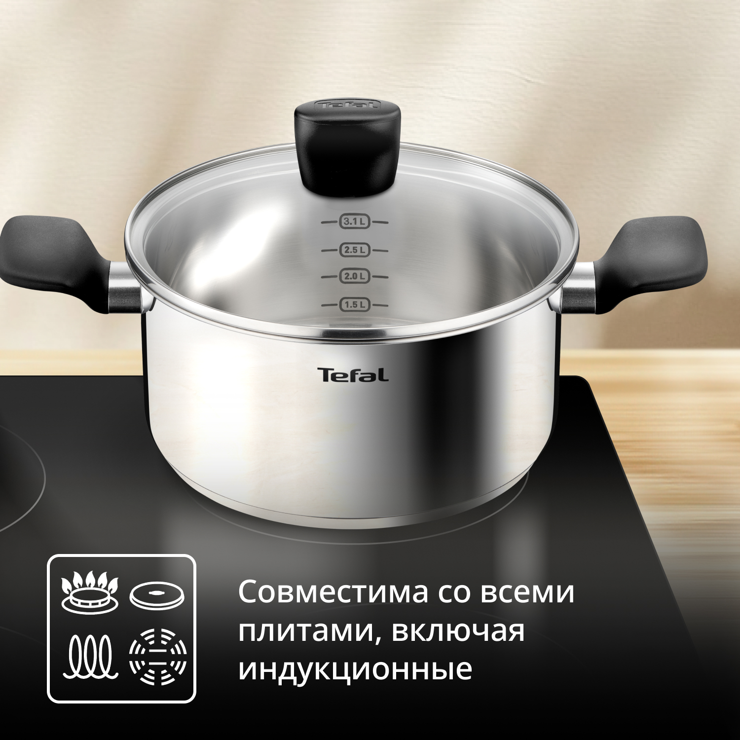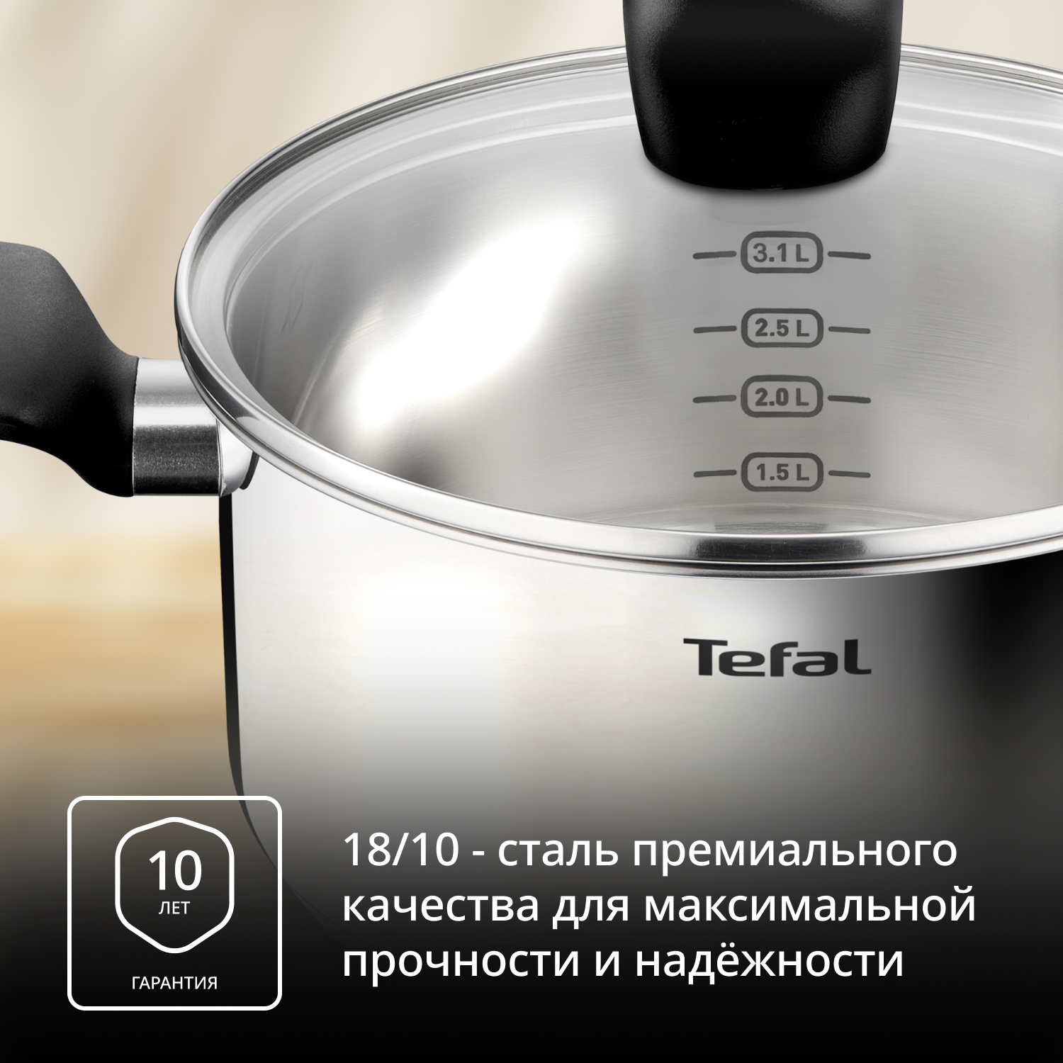 Корпус посуды для дома выполнен из нержавеющей стали премиального качества, которая отличается стойкостью к коррозии и износу, сохраняя аккуратный вид и форму год за годом. Толстое инкапсулированное дно не деформируется со временем и обеспечивает равномерное распределение тепла для тщательной готовности ингредиентов. Удобство и безопасность обеспечивают мягкие на ощупь ручки: они не нагреваются во время готовки и уверенно лежат в руках, снижая риск случайных ожогов. Стеклянная крышка для кастрюли Тефаль позволяет контролировать процесс, а продуманные края помогают сливать лишнюю жидкость аккуратно и без брызг. Внутренняя мерная шкала на стенках посуд для кухни облегчает дозирование воды, бульонов и соусов. Кастрюля подходит для всех типов плит, включая индукционные, и также может быть вымыта в посудомоечной машине — это экономит время на уходе и делает использование по-настоящему повседневным.