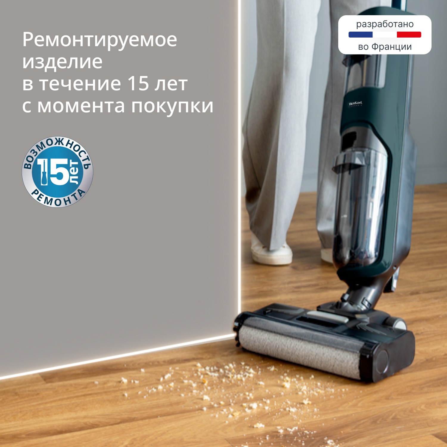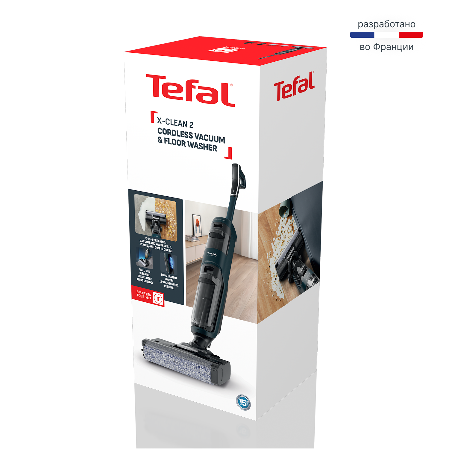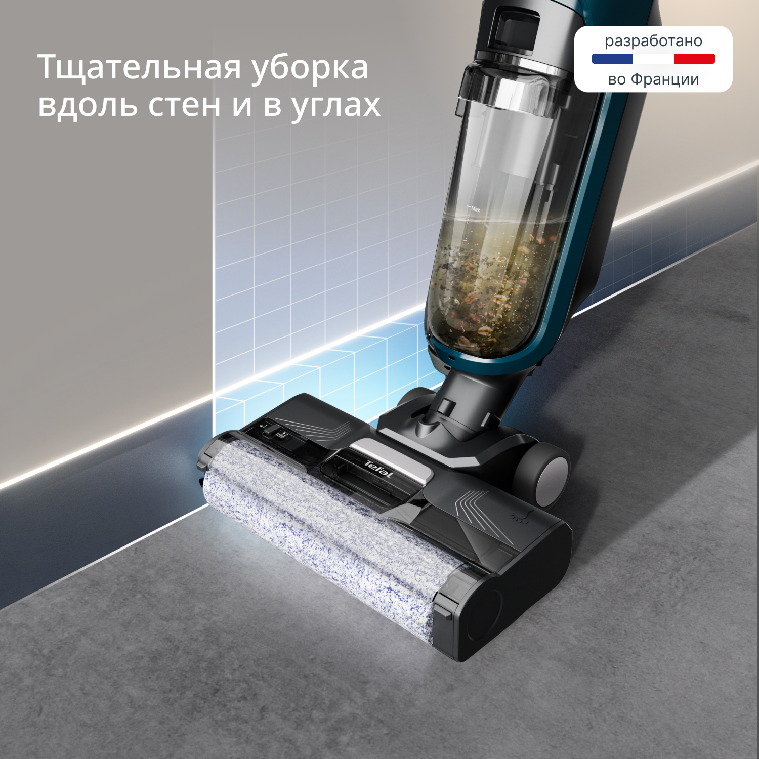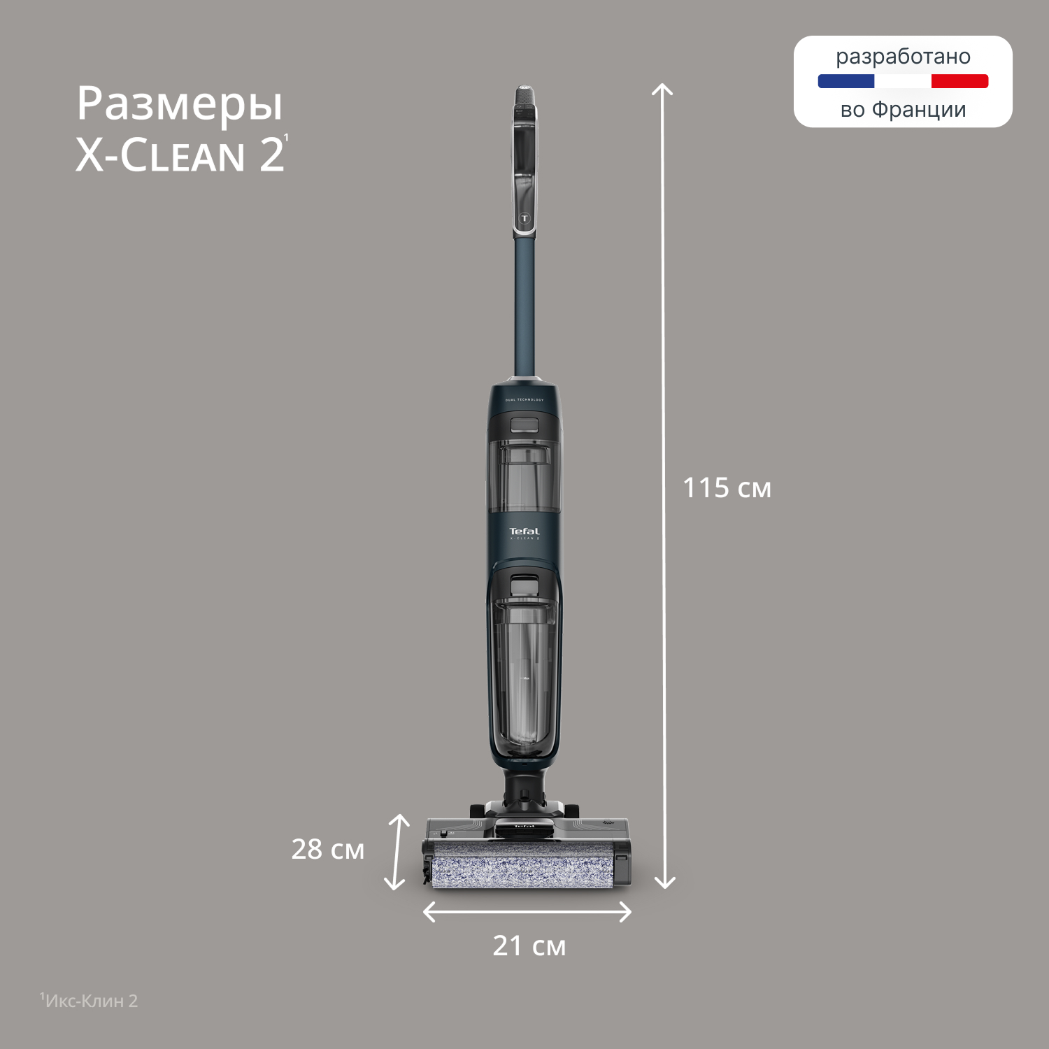 Моющий беспроводной вертикальный пылесос Tefal X-Clean 2 GF2251F3 - моет пол и убирает грязь одновременно. Эффективно удаляет любые загрязнения – от пыли
