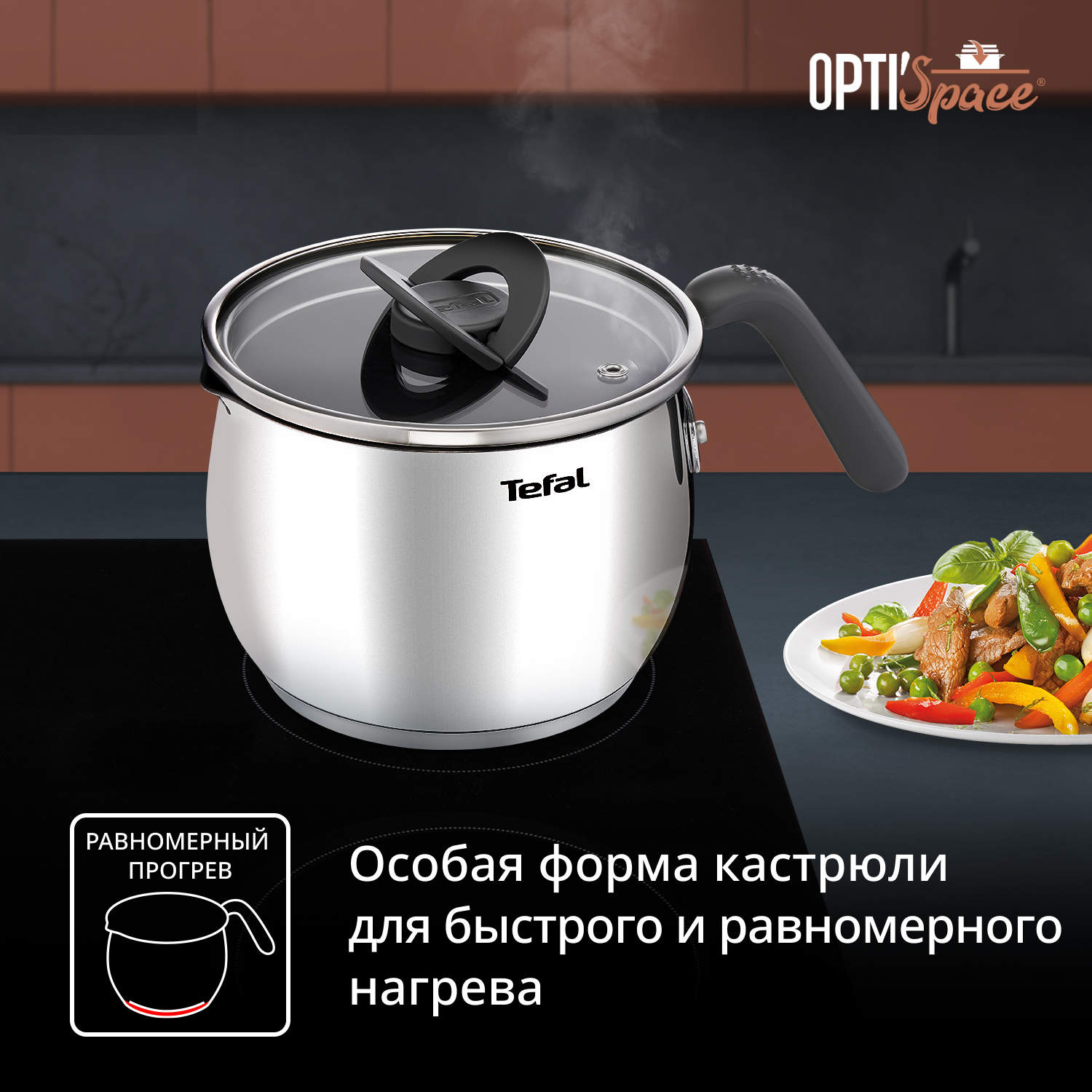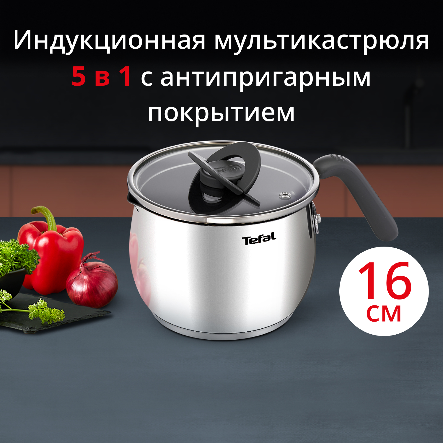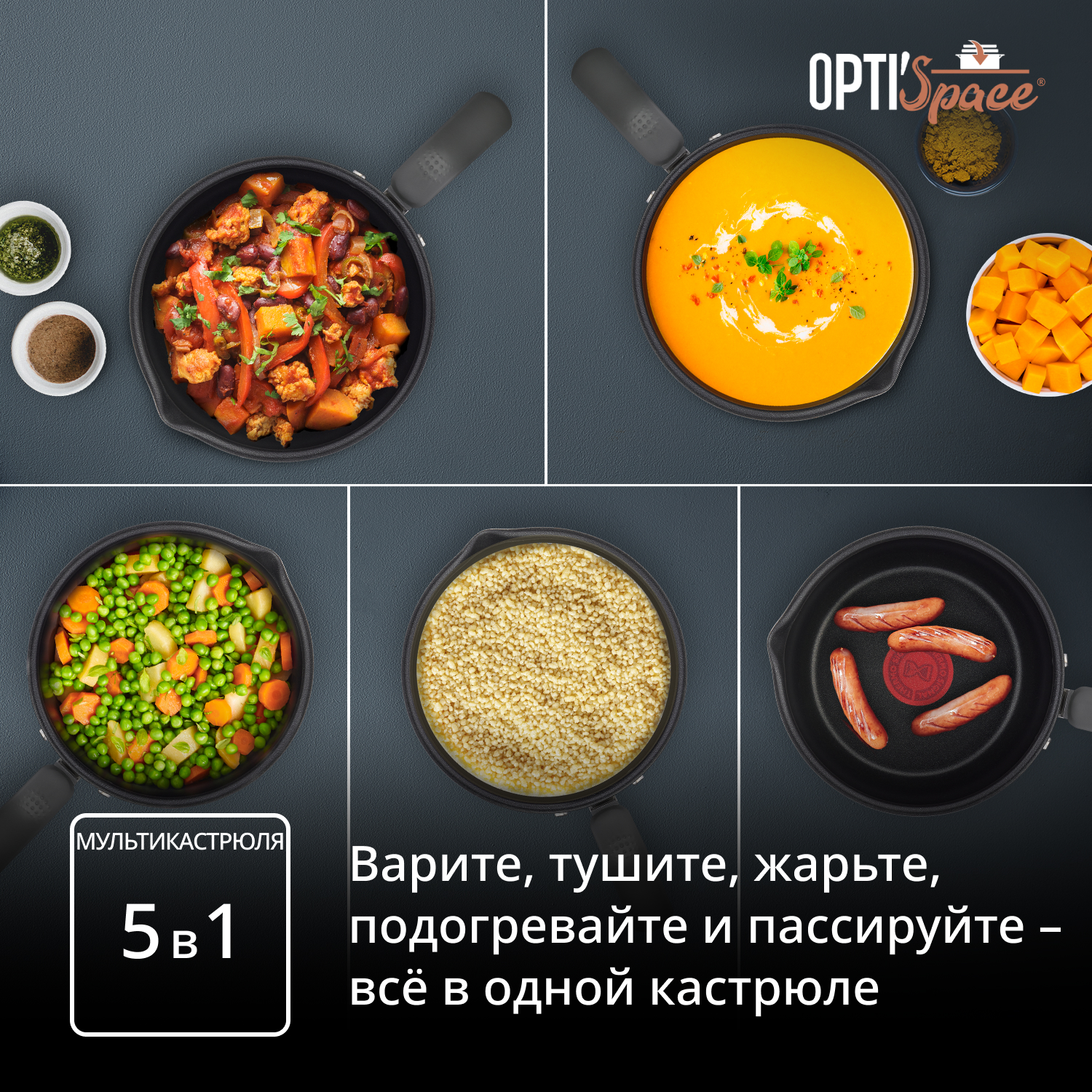 Находите вдохновение в каждом блюде вместе с мультикастрюлей Opti'Space от Tefal, с помощью которой можно с легкостью варить, тушить, жарить, пассеровать и многое другое! Прочное антипригарное покрытие обеспечивает комфорт при приготовлении любых блюд и легко чистится. Равномерное распределение тепла и инновационный индикатор Thermo-Signal™ позволяют достигать идеальных результатов каждый раз. Специальные сливные носики, эргономичная форма и удобная рукоятка – эта мультикастрюля способна вдохновить любого на новые эксперименты.