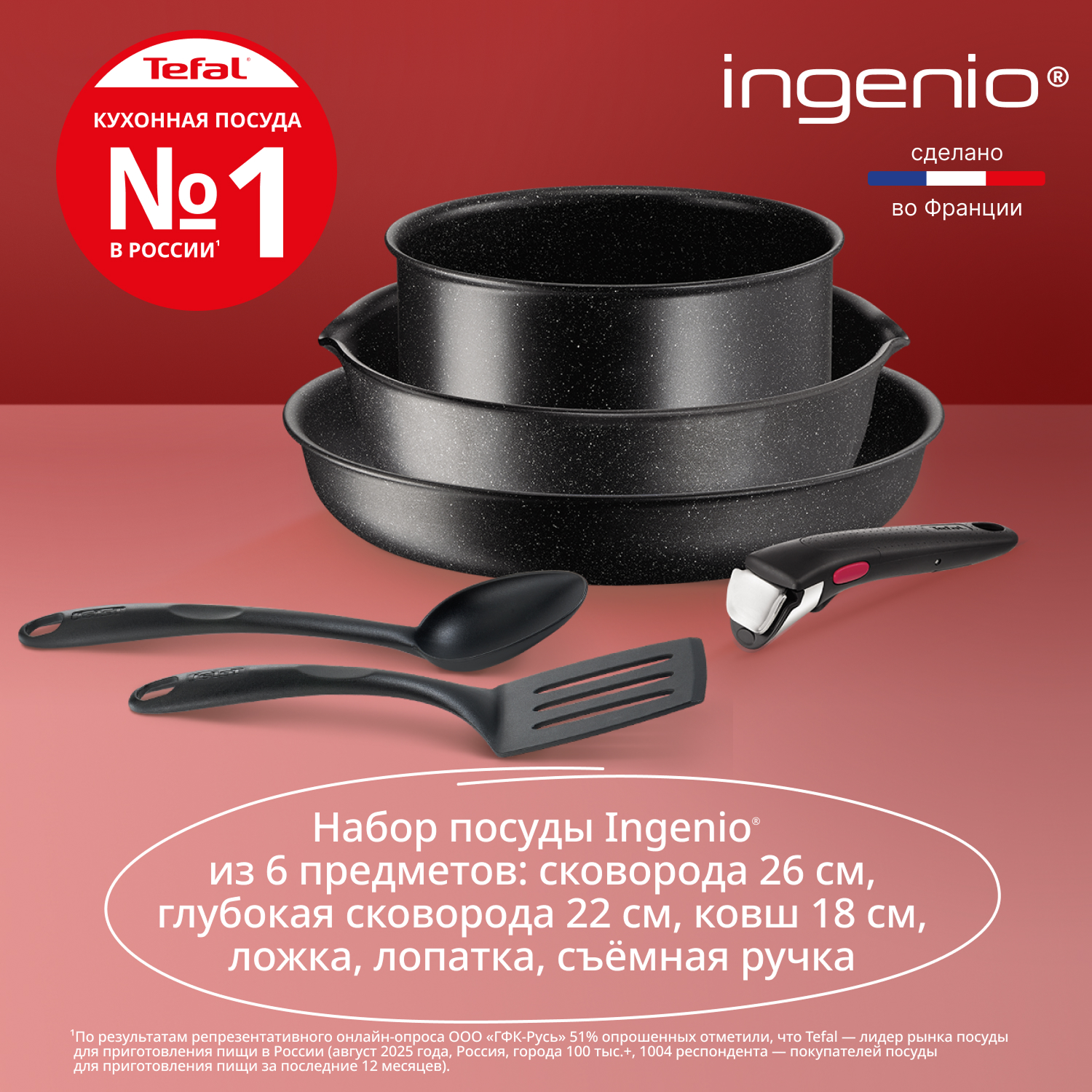 Набор посуды 6 предметов Tefal Ingenio Black Stone L3999002