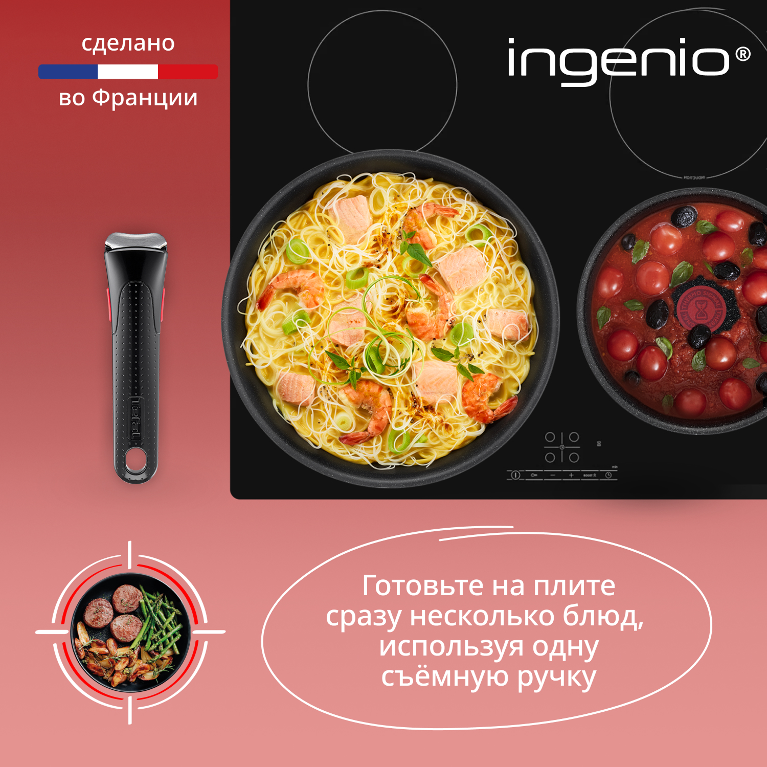• Комплектация: Сковорода 26 см, кастрюля 18 см, глубокая сковорода 22 см, угловая лопатка, ложка, съемная ручка