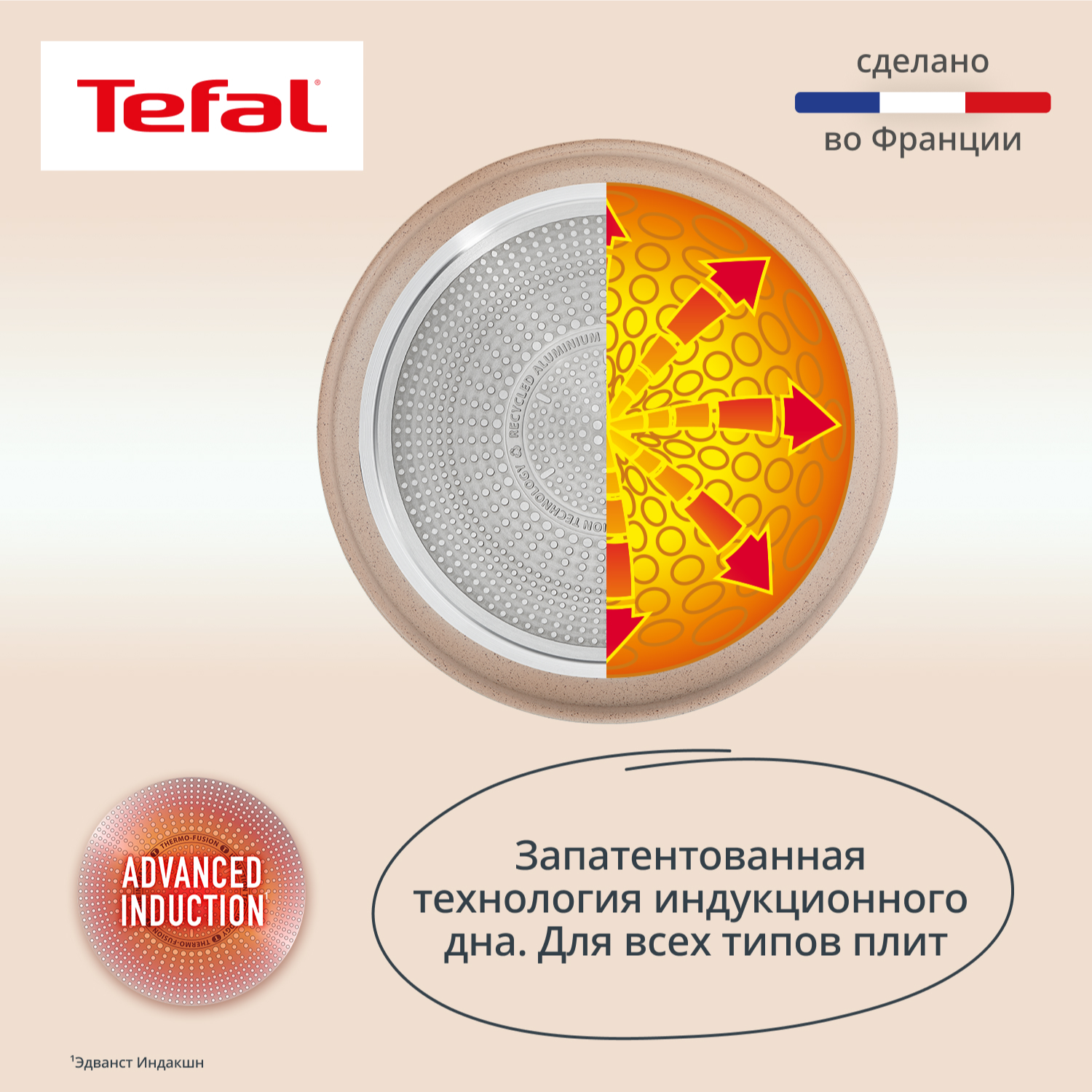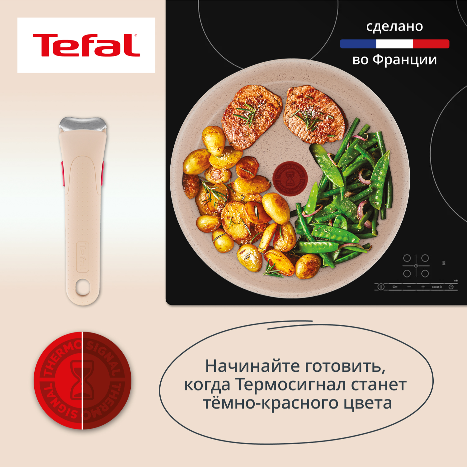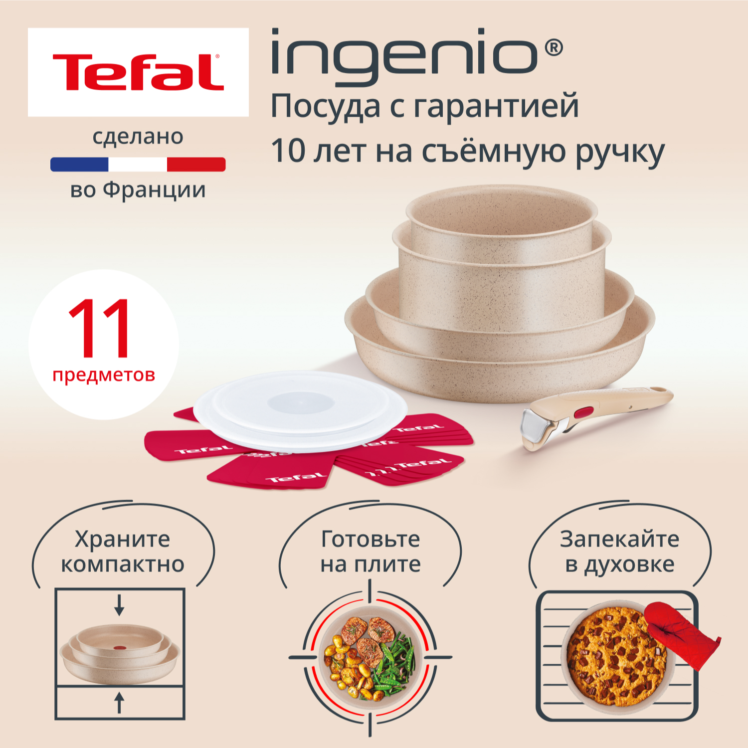 Набор посуды Tefal Ingenio Delight Cookware Set L7839202 представляет собой идеальное сочетание функциональности и стиля для вашей кухни. Изготовленный из переработанного алюминия, этот набор посуды совместим с различными типами плит, включая индукционные, газовые, электрические и керамические, что позволяет вам готовить на любом типе поверхности. Он также подходит для использования в духовке, за исключением ручек и крышек, что делает его ещё более универсальным. Антипригарное покрытие Minerallia+ и отсутствие PFOA делают кастрюли и сковороды безопасными и долговечными. Этот набор позволяет вам готовить с комфортом, как настоящий шеф, с применением современных технологий, таких как Advanced Induction Technology, которая обеспечивает эффективное распределение тепла по стенкам посуды для кухни. Кухонный набор для приготовления выполнен в стильном бежевом глиняном цвете с отделкой "Лунный свет" и оснащен съемной ручкой для удобства хранения и использования. А удобный размер и практичность делают набор Тефаль отличным выбором для приготовления различных блюд, от простых до более сложных. В комплект входят: ковш 18 и 20 см, сковородка 24 и 28 см, 2 пластиковых крышки 18 и 20 см, съемная ручка и 4 защитных вкладыша для бережного хранения посуды. Произведенный во Франции, этот набор сочетает высокое качество и современные технологии, делая каждый процесс приготовления пищи приятным и легким. Готовьте с удовольствием и уверенностью, как настоящий шеф вместе с металлическим набором посуды со съемной ручкой Ingenio Delight Cookware Set от Tefal!