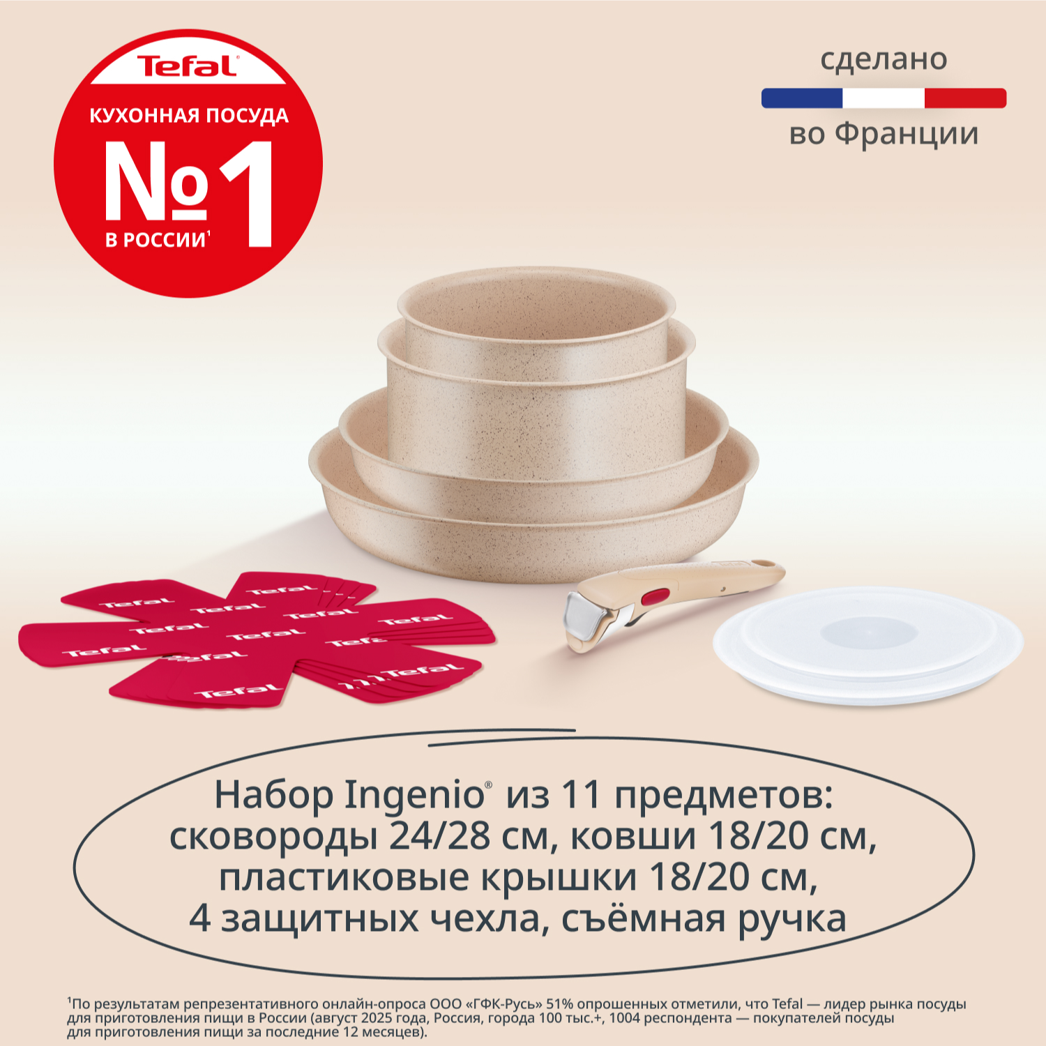 Набор посуды Tefal Ingenio Delight Cookware Set L7839202 представляет собой идеальное сочетание функциональности и стиля для вашей кухни. Изготовленный из переработанного алюминия, этот набор посуды совместим с различными типами плит, включая индукционные, газовые, электрические и керамические, что позволяет вам готовить на любом типе поверхности. Он также подходит для использования в духовке, за исключением ручек и крышек, что делает его ещё более универсальным. Антипригарное покрытие Minerallia+ и отсутствие PFOA делают кастрюли и сковороды безопасными и долговечными. Этот набор позволяет вам готовить с комфортом, как настоящий шеф, с применением современных технологий, таких как Advanced Induction Technology, которая обеспечивает эффективное распределение тепла по стенкам посуды для кухни. Кухонный набор для приготовления выполнен в стильном бежевом глиняном цвете с отделкой "Лунный свет" и оснащен съемной ручкой для удобства хранения и использования. А удобный размер и практичность делают набор Тефаль отличным выбором для приготовления различных блюд, от простых до более сложных. В комплект входят: ковш 18 и 20 см, сковородка 24 и 28 см, 2 пластиковых крышки 18 и 20 см, съемная ручка и 4 защитных вкладыша для бережного хранения посуды. Произведенный во Франции, этот набор сочетает высокое качество и современные технологии, делая каждый процесс приготовления пищи приятным и легким. Готовьте с удовольствием и уверенностью, как настоящий шеф вместе с металлическим набором посуды со съемной ручкой Ingenio Delight Cookware Set от Tefal!