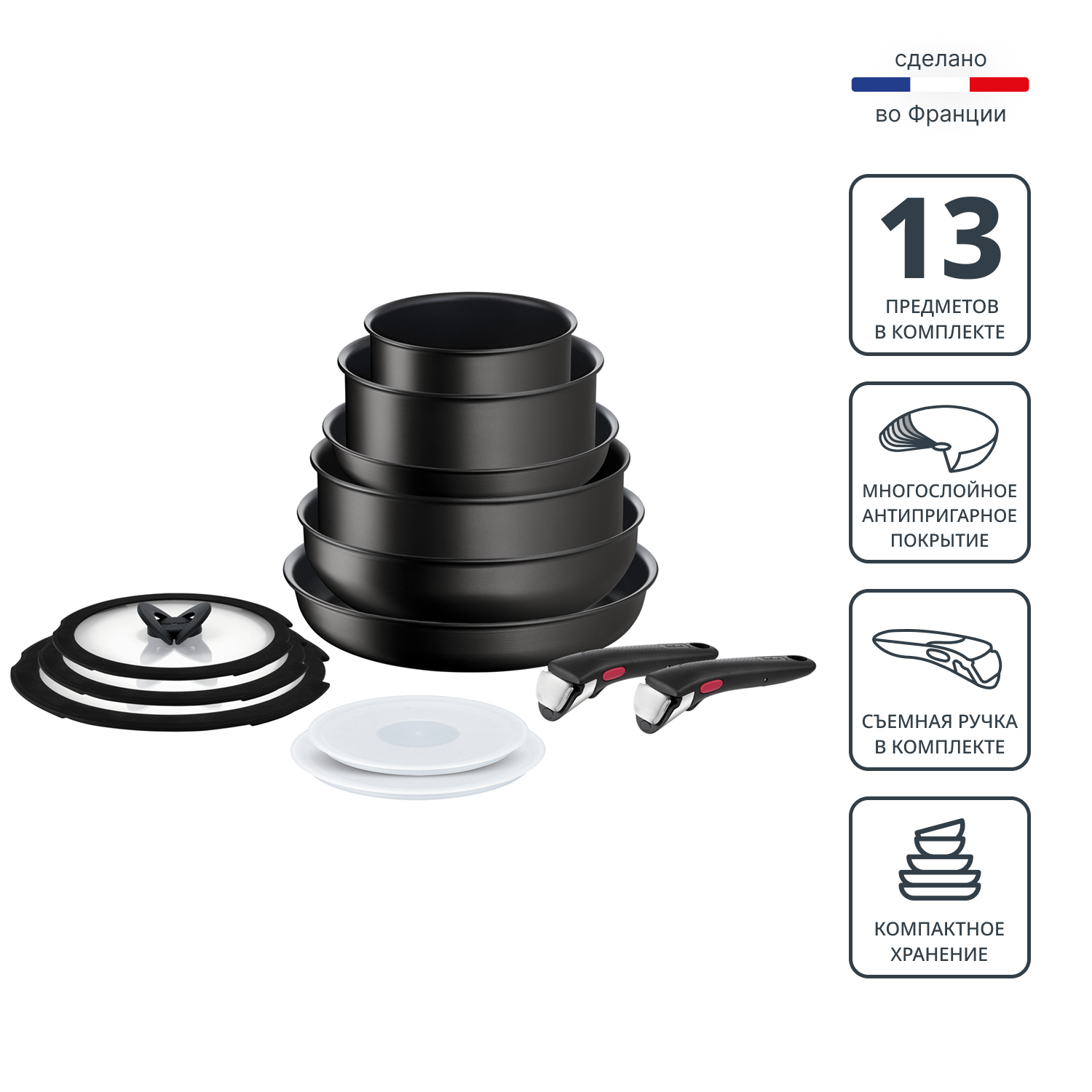 Набор посуды со съемной ручкой Tefal Ingenio Unlimited 13 предметов L7639002