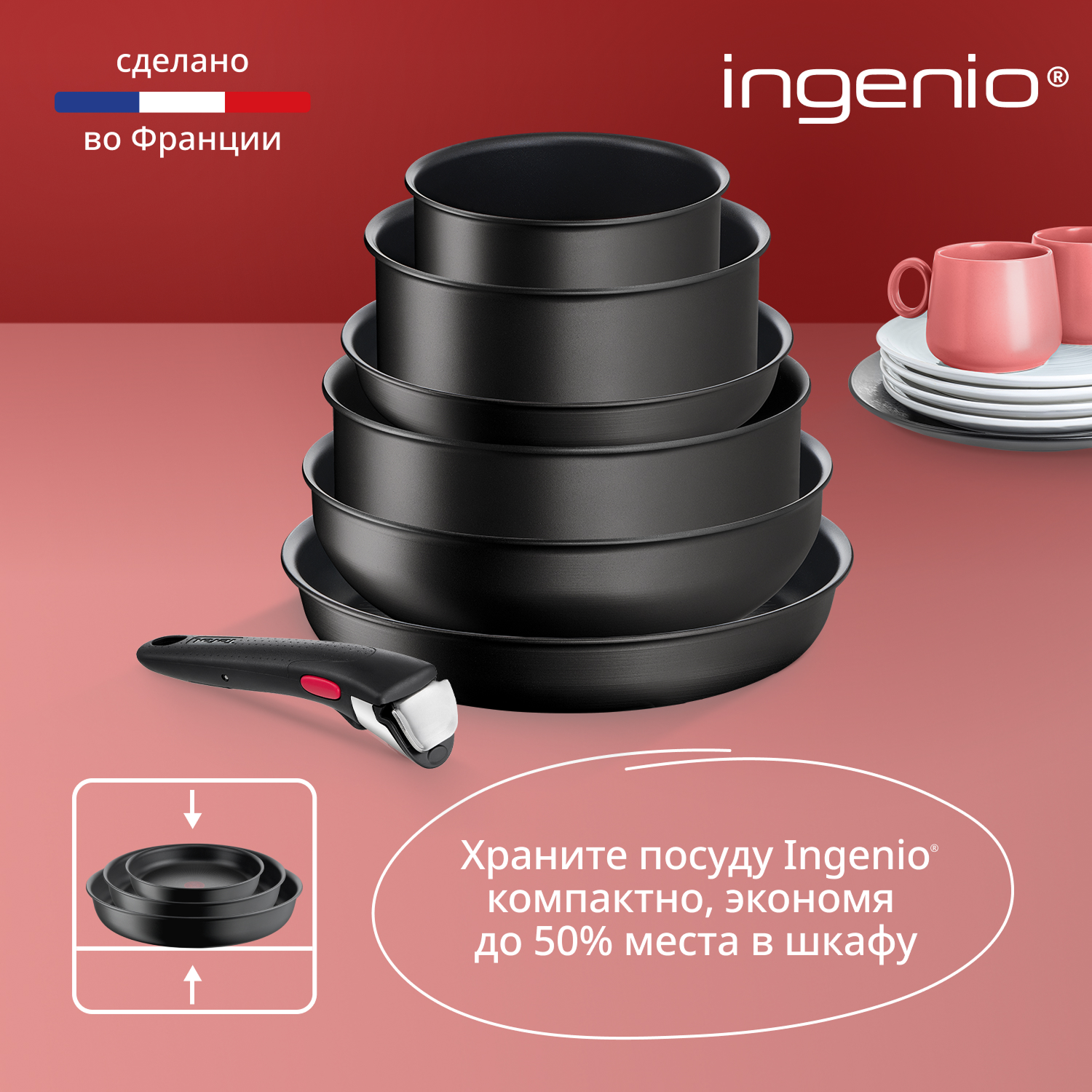 Набор посуды со съемной ручкой