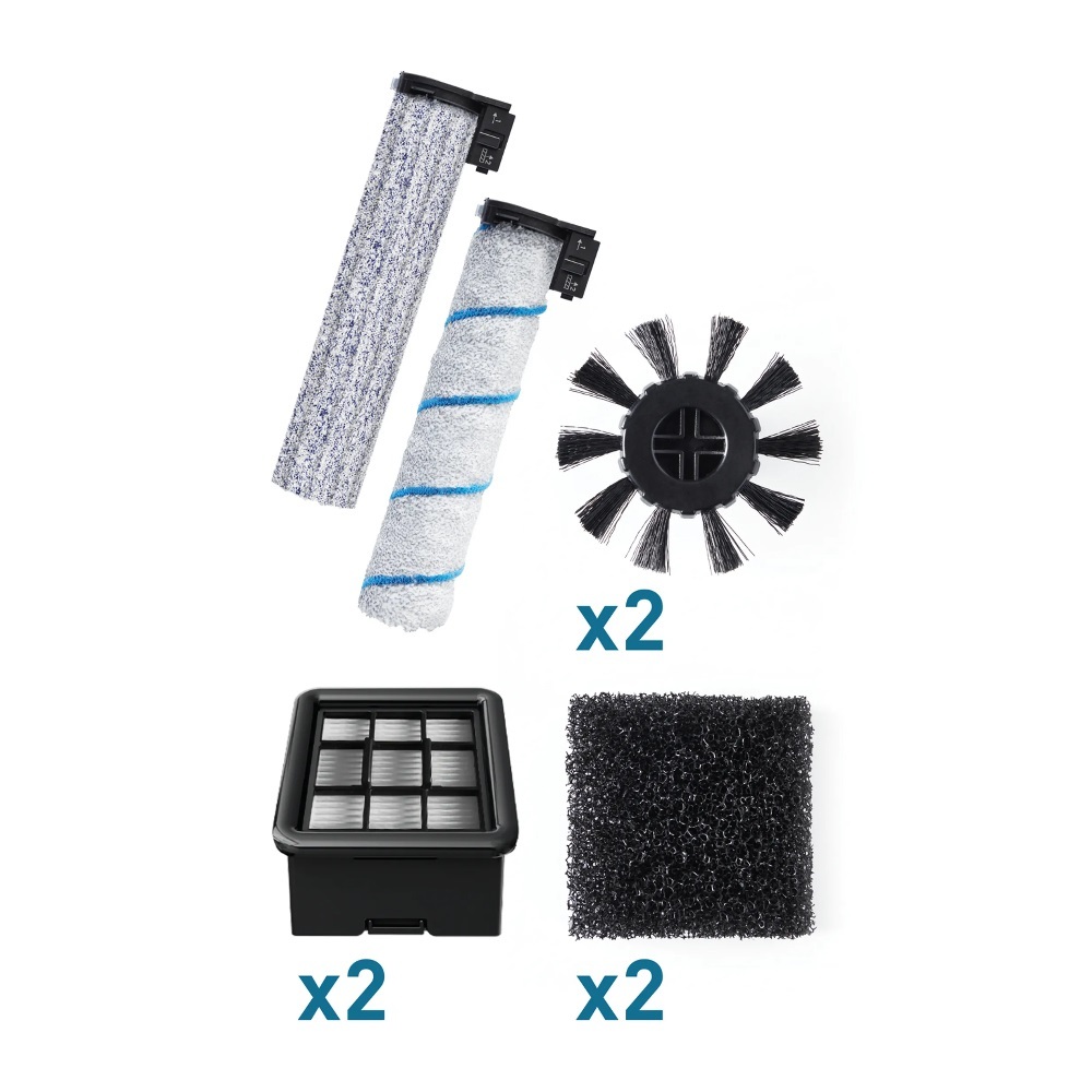Боковые щетки - 2 шт, Пена для защиты от столкновений - 2 шт., Валик для чистки из микрофибры - 1 шт, Мягкий валик из микрофибры - 1 шт, фильтры - 2 шт.