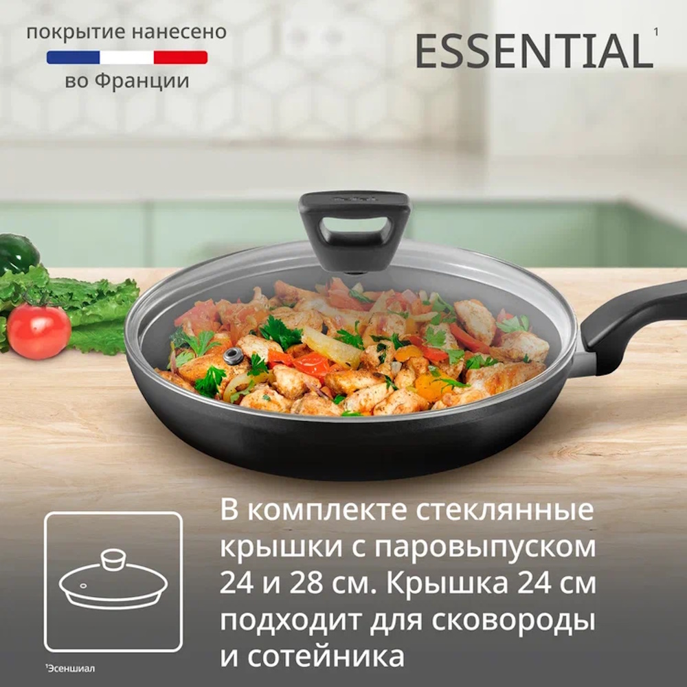 Эргономичные ручки с мягким покрытием обеспечивают комфортный и безопасный захват, а прочная конструкция гарантирует долговечность использования. Сковороды Tefal Essential легко моются и устойчивы к царапинам, сохраняя безупречный вид даже при интенсивной эксплуатации. Этот набор станет надежным помощником в приготовлении разнообразных блюд.