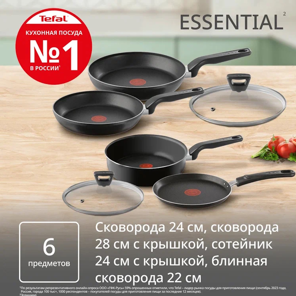Набор сковород Tefal Essential (4251860) – это практичное и функциональное решение для современной кухни. Сковороды изготовлены из прочного алюминия, обеспечивающего быстрый и равномерный нагрев, а внутреннее антипригарное покрытие Titanium Non-stick гарантирует легкое приготовление и уход. Благодаря высокой износостойкости покрытия пища не пригорает, а для жарки требуется минимальное количество масла. Новый день – новый повод удивить родных и близких.