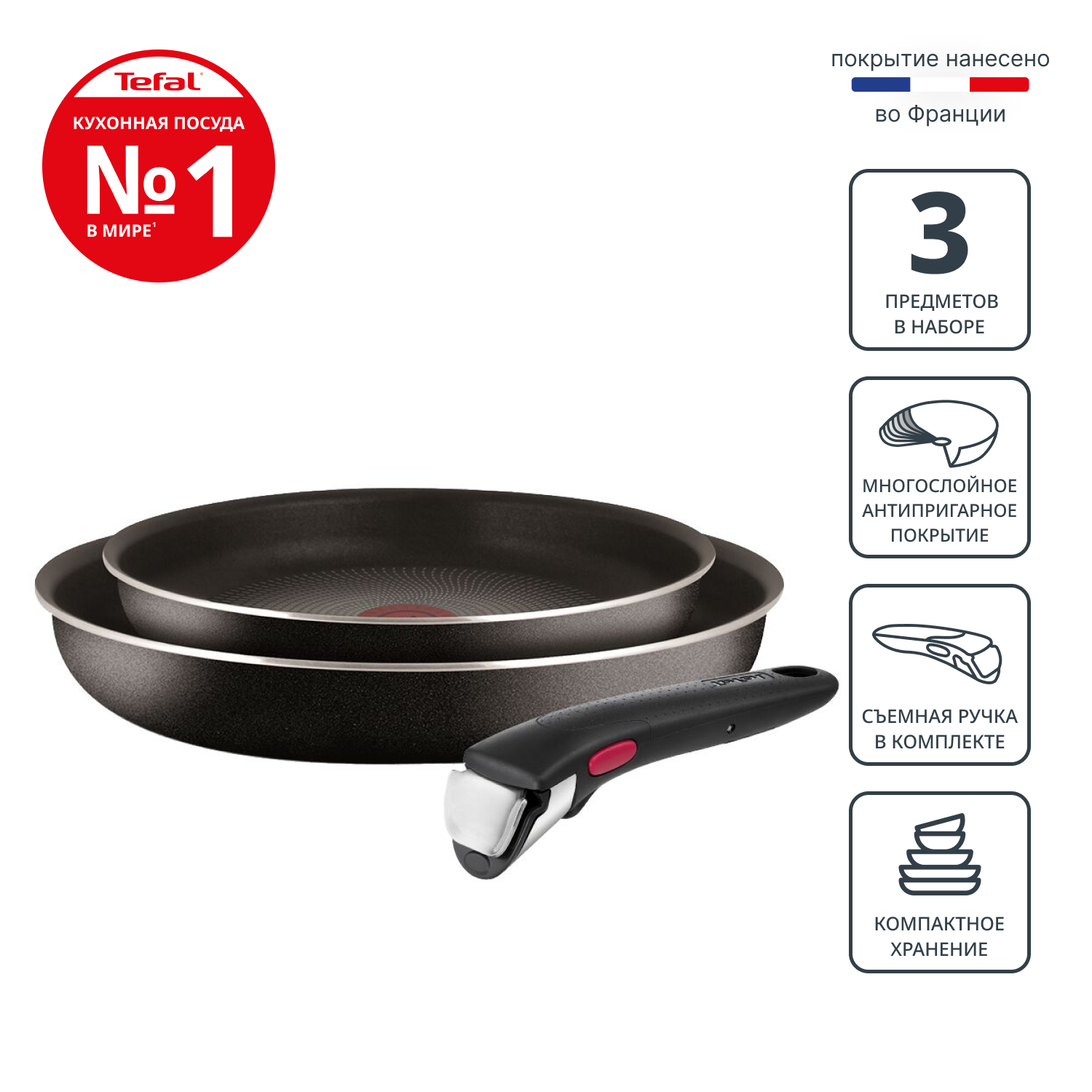 Набор сковород Tefal Ingenio 4250820, 24/28 см, съемная ручка