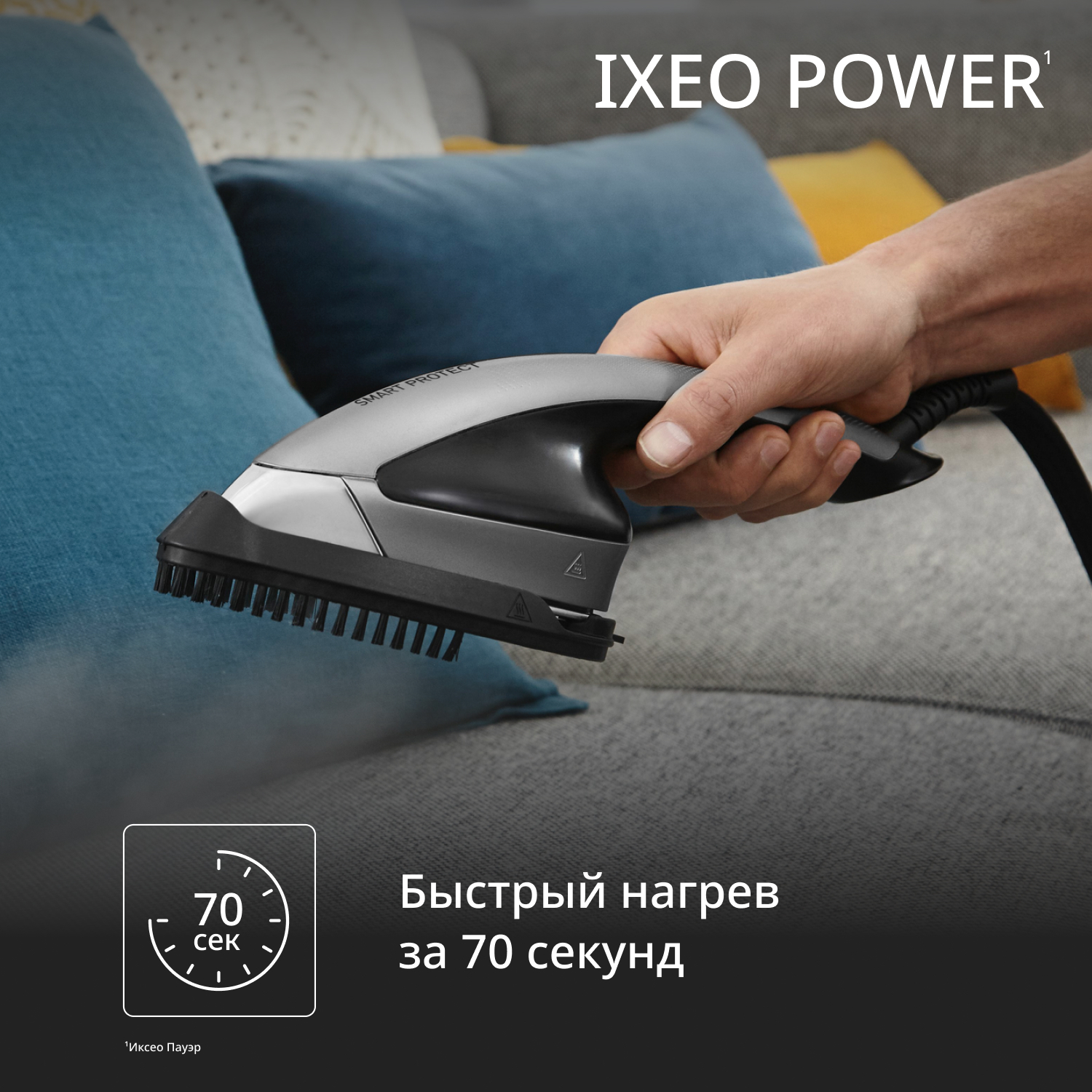 Система готова к работе уже через 70 секунд — идеальное решение для ежедневного использования и быстрых сеансов ухода за одеждой перед выходом из дома. Обработайте паром домашний текстиль, шторы и освежите обивку мягкой мебели там, где вам удобно, благодаря съёмной базе с резервуаром для воды объёмом 1,1 л. Мощная сила пара освежает одежду, устраняет неприятные запахи и уничтожает до 99,99% бактерий, микробов и вирусов.