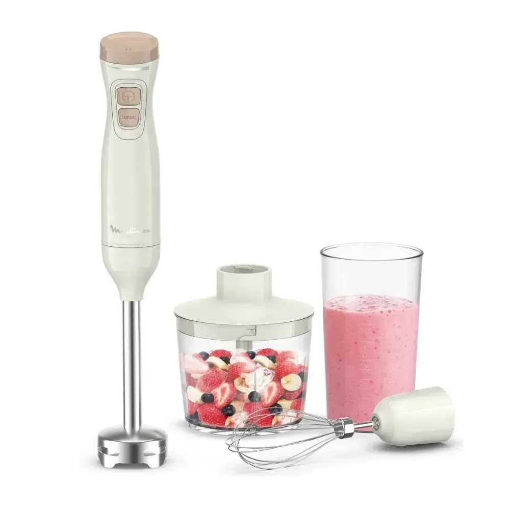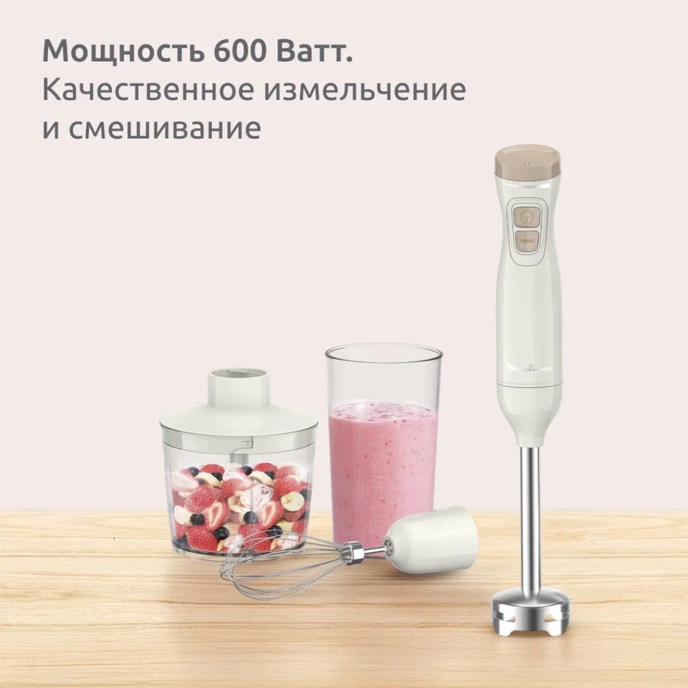 Оптимальная мощность без лишних усилий! С погружным блендером DD523AF0 от Moulinex вы получите невероятную производительность и полный контроль благодаря мотору мощностью 600 Вт, который обеспечивает оптимальное измельчение и смешивание. Блендер оснащен двумя лезвиями, благодаря которым даже твердые продукты измельчаются легко и быстро, текстура получается однородной, а лезвия защищены от повреждений. Специальная защита от брызг и нескользящая ручка повышают удобство использования, а уход становится легче — съемные части блендера можно мыть в посудомоечной машине. В комплект входят мерный стакан, измельчитель для легкого измельчения разнообразных продуктов и венчик для быстрого взбивания жидких ингредиентов.