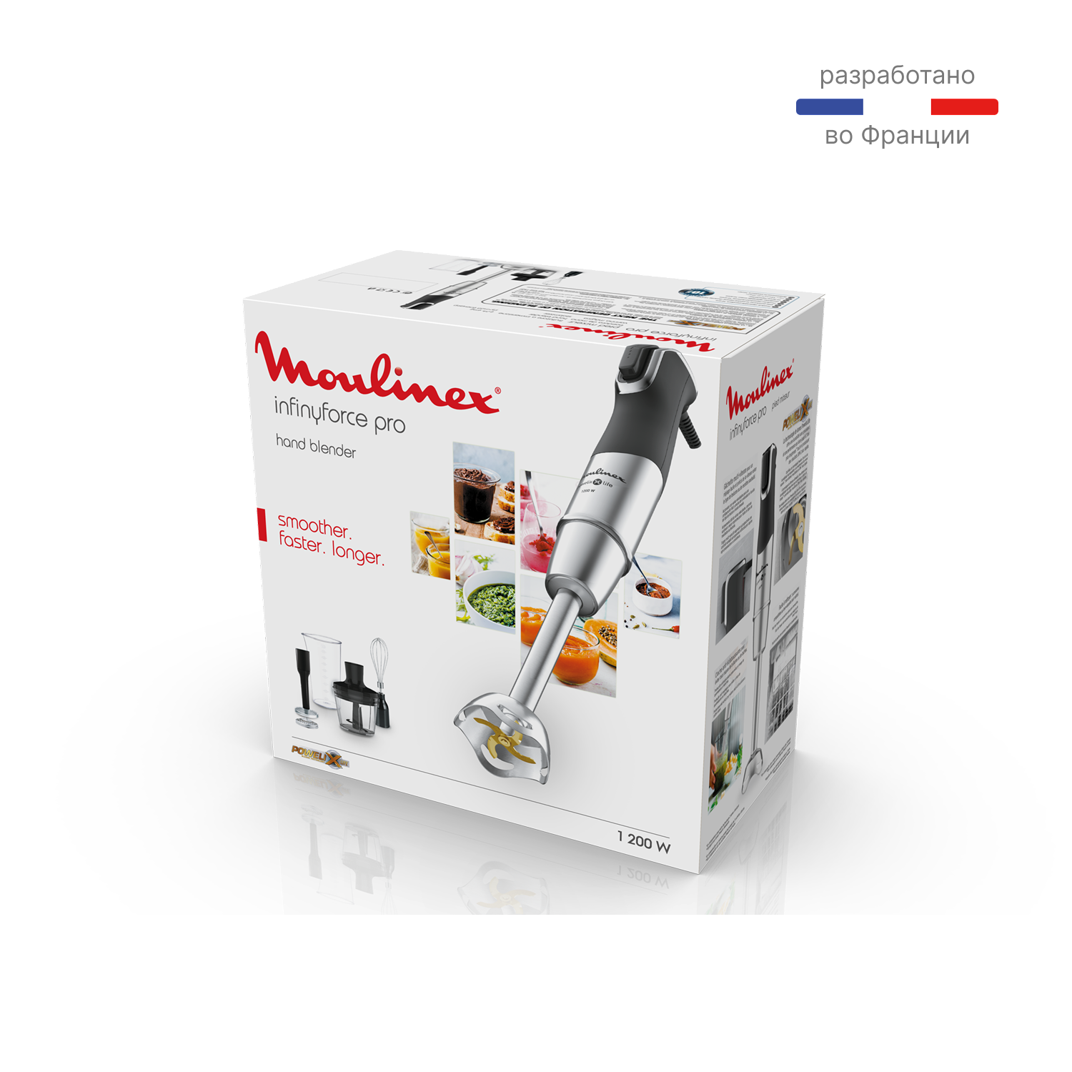 Погружной блендер Moulinex InfinyForce Pro DD95HD10 — это ваш персональный помощник на кухне. Его мощности в 1200 Вт хватит, чтобы справиться с самыми сложными задачами: от измельчения твердых орехов и колки льда до создания идеального супа-пюре.