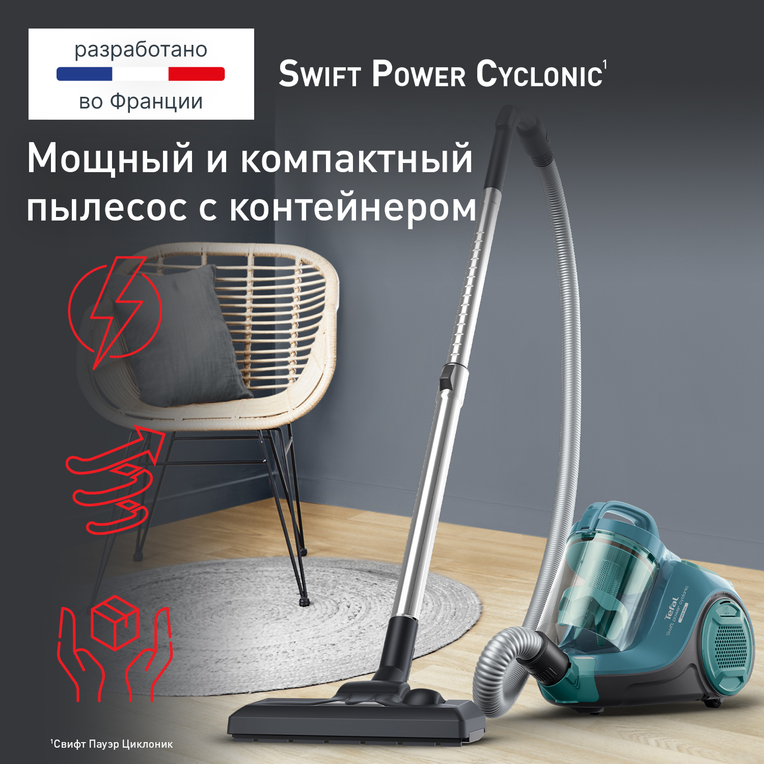 Пылесос SWIFT POWER CYCLONIC TW2922EA идеально подходит для ежедневной уборки благодаря высокой мощности и компактному корпусу. Усовершенствованная циклонная технология в сочетании с высокоэффективной насадкой обеспечивают отличное качество сбора пыли и максимальную фильтрацию воздуха. А благодаря небольшим размерам и эргономичному дизайну пылесос удобно хранить и использовать. Качество уборки аналогично пылесосу с мощностью 2100 Вт благодаря мотору с технологией EffiWatts, что гарантирует высокую эффективность работы при сниженном потреблении электроэнергии. Усовершенствованная циклонная технология обеспечивает максимальную фильтрацию всасываемого воздуха от пыли и грязи для поддержания чистоты надолго. Благодаря шнуру питания с радиусом 7.6 м вам не придется переключаться между розетками, чтобы за один раз убраться даже в большом помещении. Высокоэффективный фильтр обеспечивает максимальную фильтрацию всасываемого воздуха, очищая его от пыли и грязи и предотвращает их повторное попадание в окружающую среду. Контейнер для сбора пыли легко чистить: просто снимите и переверните его над мусорным ведром, чтобы вся собранная пыль высыпалась из контейнера. Благодаря компактному корпусу пылесос удобно не только использовать каждый день, но и хранить даже в небольшой квартире.