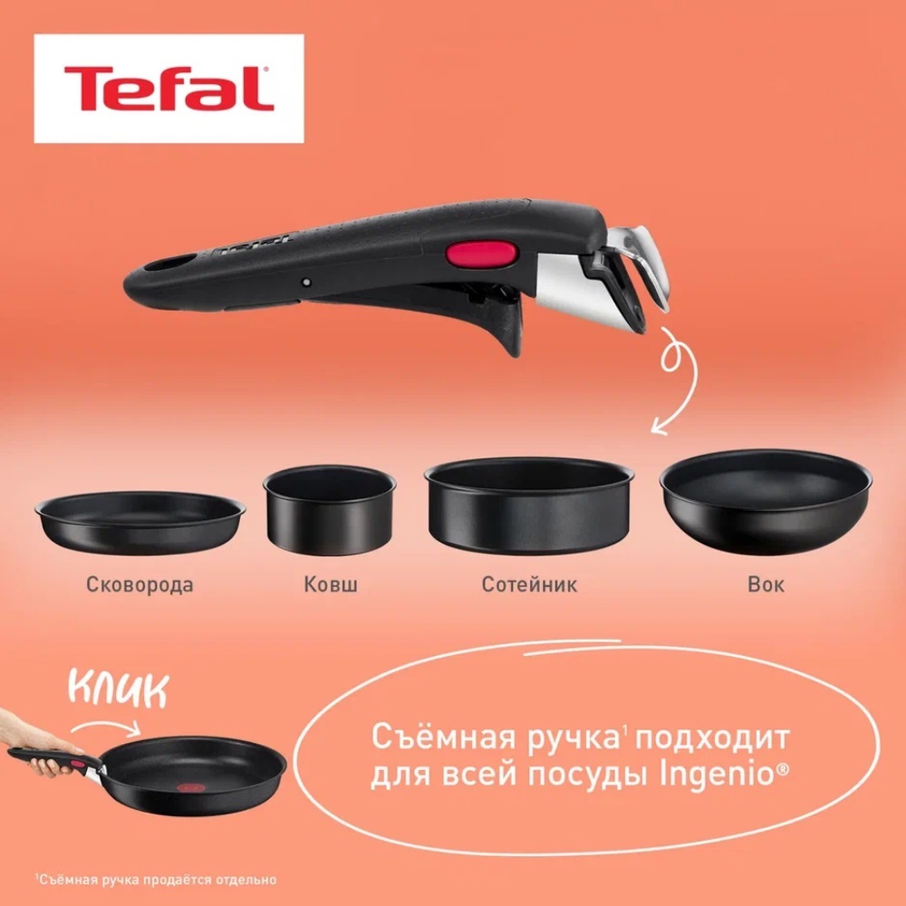 Tefal Ingenio пользуется бесспорным авторитетом в области технологии съемных ручек и уже более 20 лет руководствуется потребностями покупателей и безопасностью, чтобы оставаться лидером инноваций. Так как высокое качество и безопасность продуктов могут быть гарантированы только при условии их совместного использования, посуда Tefal Ingenio не может использоваться ни с какими другими ручками, доступными на рынке.