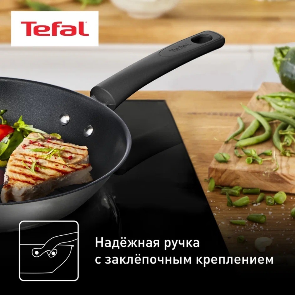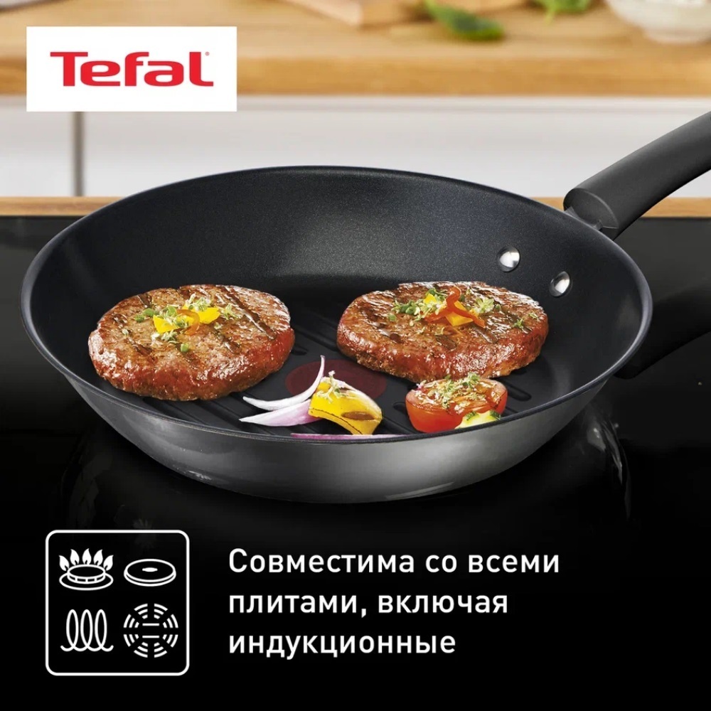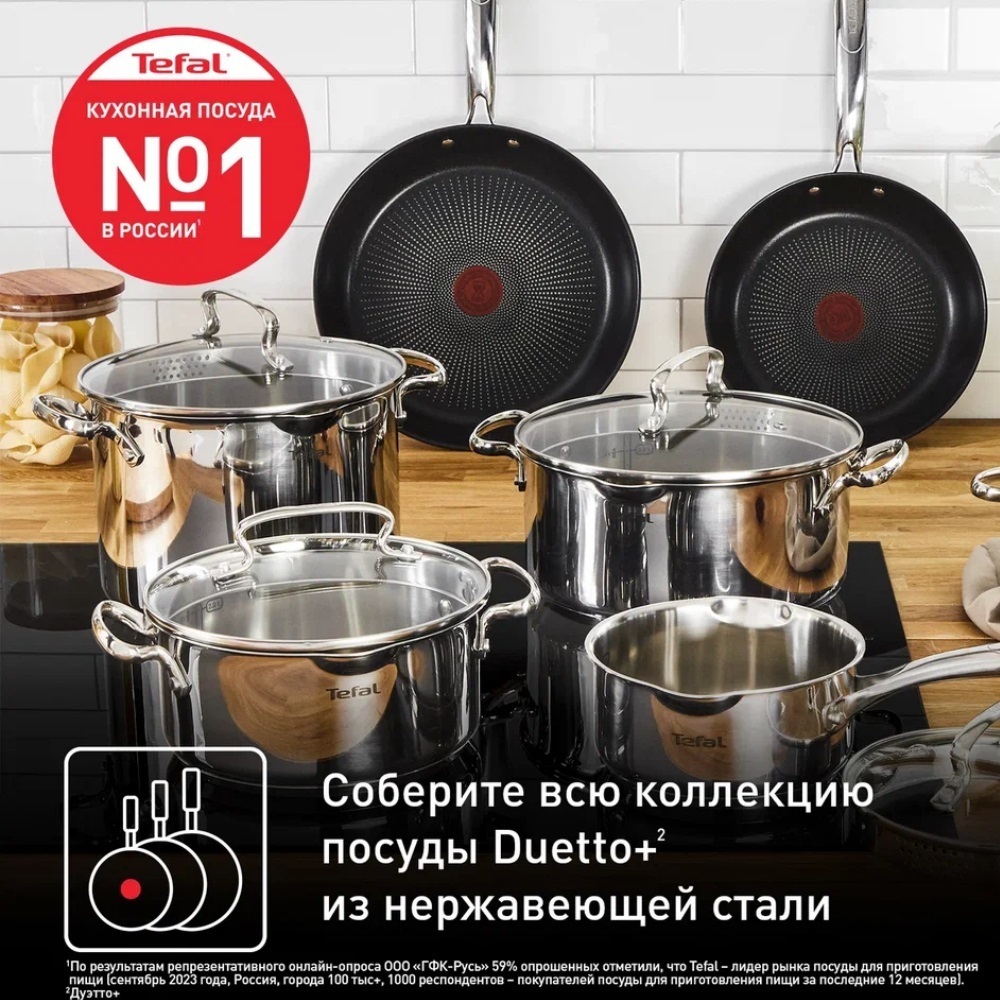 Сковорода-гриль круглая Tefal Duetto + 26 см G7334055 — идеальный выбор для любителей гриля. С диаметром 26 см она идеально подходит для приготовления разнообразных блюд, таких как мясо, рыба и овощи, придавая им характерный гриль-аромат и идеально поджаренную корочку. Это отличное решение для здорового питания без лишнего масла. Сковорода оснащена антипригарным покрытием Titanium 2X, которое в два раза более устойчиво к износу, чем стандартные покрытия, и гарантирует долговечность. Это покрытие позволяет готовить без масла, облегчает очистку и сохраняет привлекательный внешний вид сковороды на протяжении долгого времени. Также сковорода оснащена индикатором температуры Thermo-Spot, который точно показывает момент, когда сковорода достигает нужной температуры для начала готовки, обеспечивая равномерный прогрев и превосходный результат. Сковорода выполнена из высококачественной нержавеющей стали, что подтверждает ее прочность и стойкость к повреждениям. На сталь предоставляется 10 лет гарантии, что свидетельствует о надежности и качестве продукции. Сковорода Tefal Duetto + оснащена удобной ручкой из нержавеющей стали, которая обеспечивает надежный захват и комфорт при использовании, гарантируя безопасность во время приготовления пищи. Сковороды серии Duetto + от Tefal — это сочетание инновационных технологий и прочных материалов, которые делают процесс готовки удобным и приятным.
