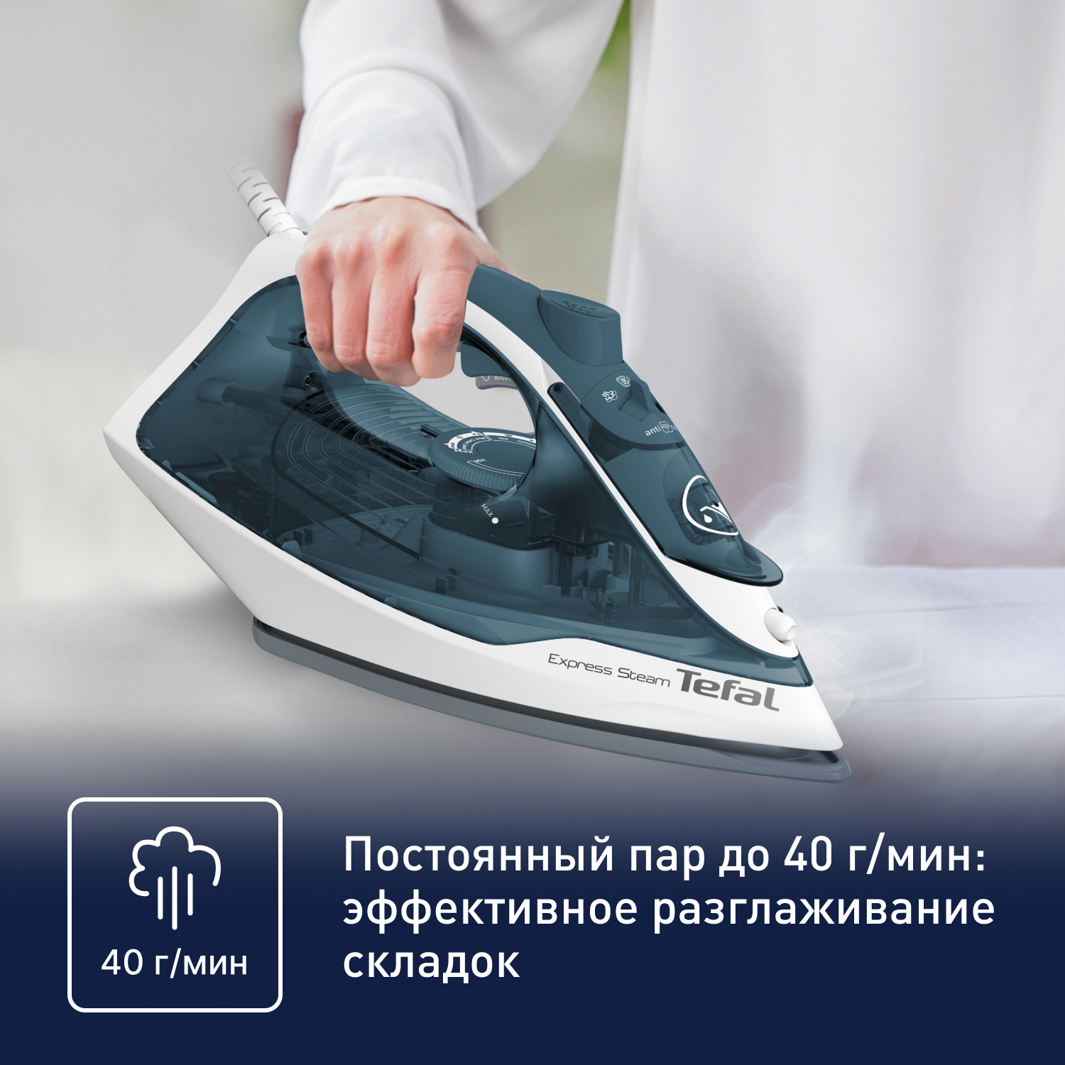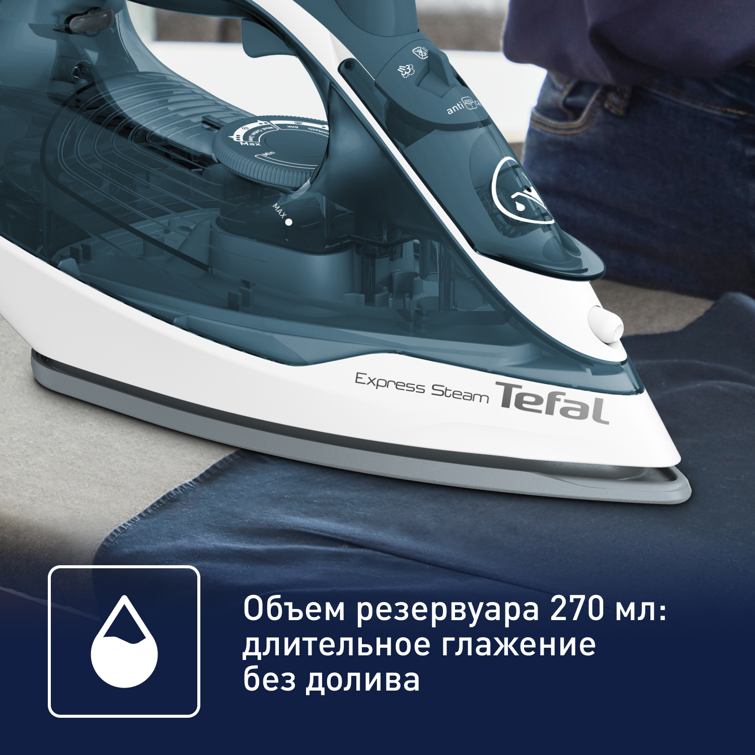 <p>В процессе глажки несколько капель воды попадают на пол.