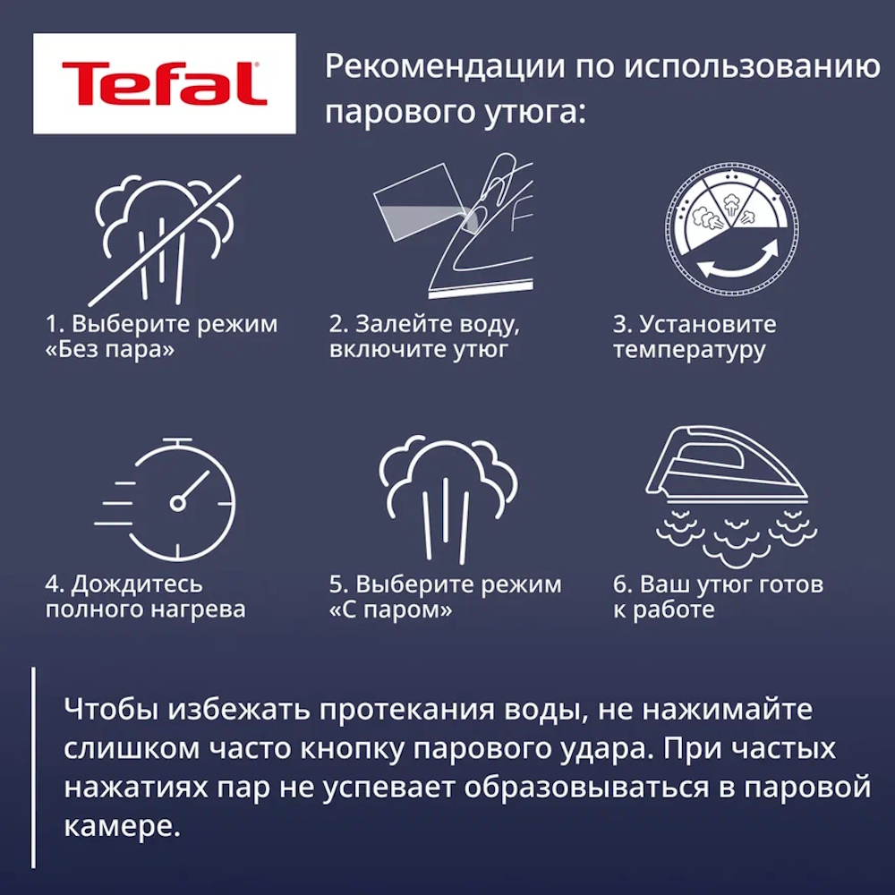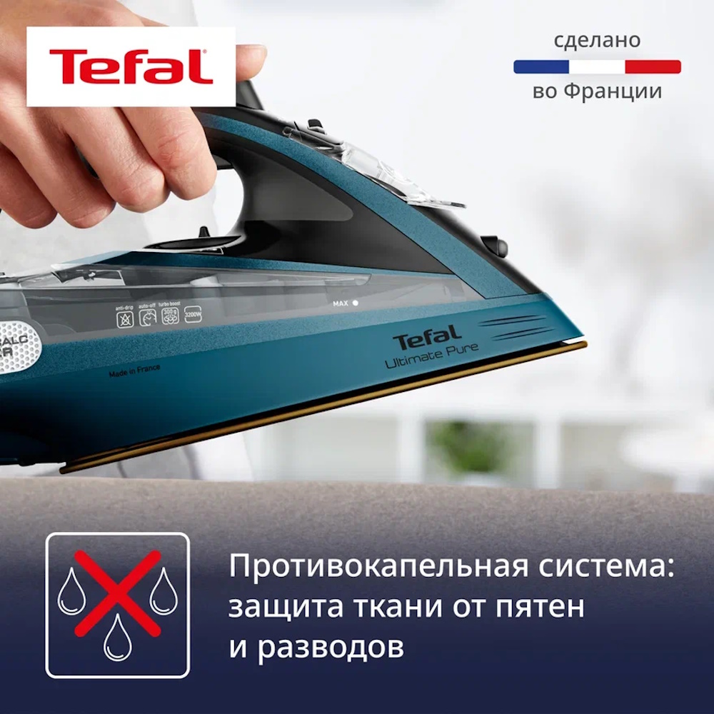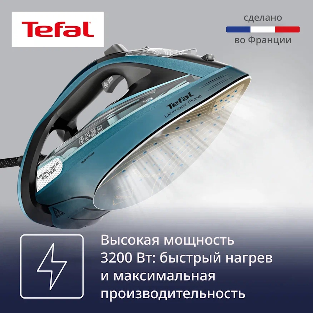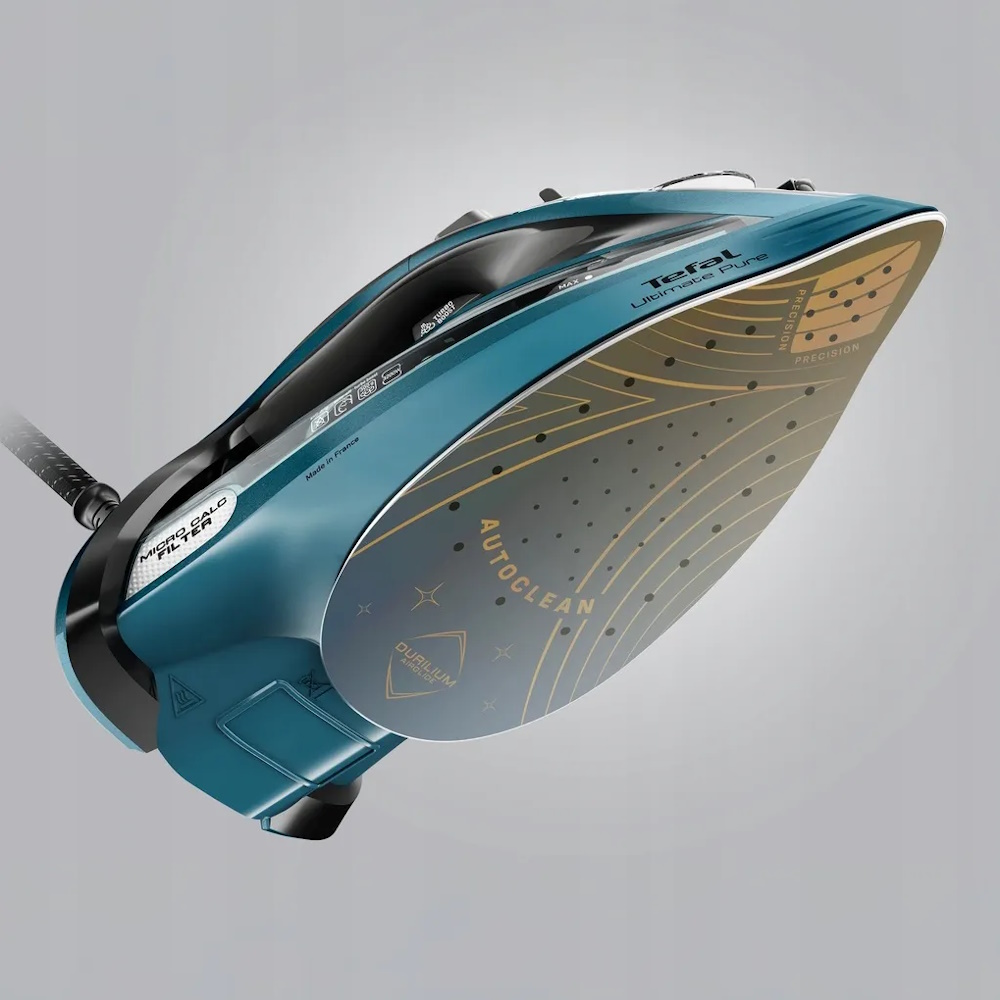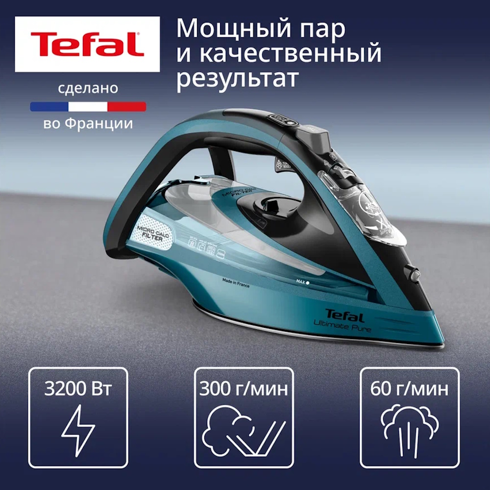 Утюг Tefal Ultimate Pure FV9851E0 — это утюг для тех, кто хочет профессиональный результат дома без лишних усилий. Мощность до 3200 Вт обеспечивает быстрый нагрев, поэтому вы начинаете гладить почти сразу — идеально, когда время ограничено. Постоянная подача пара до 60 г/мин легко разглаживает повседневные складки, а паровой удар 300 г/мин помогает справляться с плотными тканями и подходит для вертикального отпаривания — удобно освежить пиджак или платье прямо на вешалке. Резервуар объёмом 350 мл позволяет гладить дольше без частых доливов воды. Система Micro Calc Filter задерживает частицы накипи и пропускает только чистый пар, предотвращая появление пятен на светлой одежде. Это реальная защита тканей и стабильная мощность устройства на долгие годы. Противокапельная система дополнительно защищает от разводов при низких температурах. Подошва Durilium AirGlide обеспечивает лёгкое скольжение и равномерное распределение пара, делая каждое движение плавным и точным. Автоматическое отключение через 30 секунд в горизонтальном положении и через 8 минут в вертикальном добавляет уверенности и безопасности. Идеально подойдёт для семьи и тех, кто регулярно гладит большие объёмы одежды.