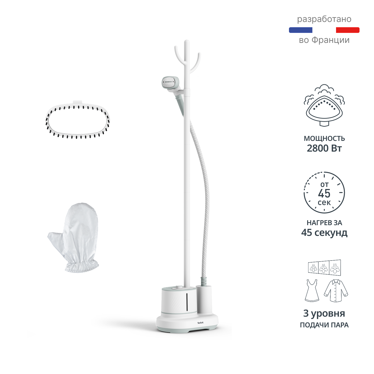 Конструкция с вешалкой для одежды, щетка с плотным ворсом, перчатка.