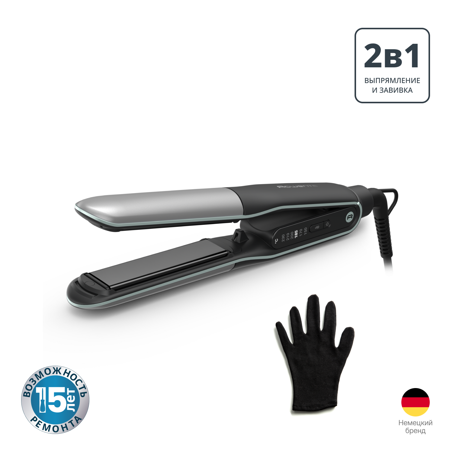 Выпрямитель для волос ROWENTA SF7120E0 - это идеальное устройство 2 в 1 от Rowenta, которое обеспечит вам быстрое и беззаботное выпрямление и завивку волос. Благодаря автоматическому отключению и блокировке пластин для хранения вы можете не беспокоиться о безопасности и удобстве. Выпрямитель оснащен вращающимся шнуром и подвижными пластинами для легкого моделирования волос. Кроме того, благодаря 6 уровням регулировки температуры и технологии ионизации ваши волосы будут выглядеть здоровыми и блестящими. Выпрямитель SF7120E0 не предназначен для использования на влажных или мокрых волосах, но благодаря керамико-титановому покрытию пластин и максимальной температуре 230 градусов он эффективно выпрямляет волосы любого типа. В комплекте идет перчатся.